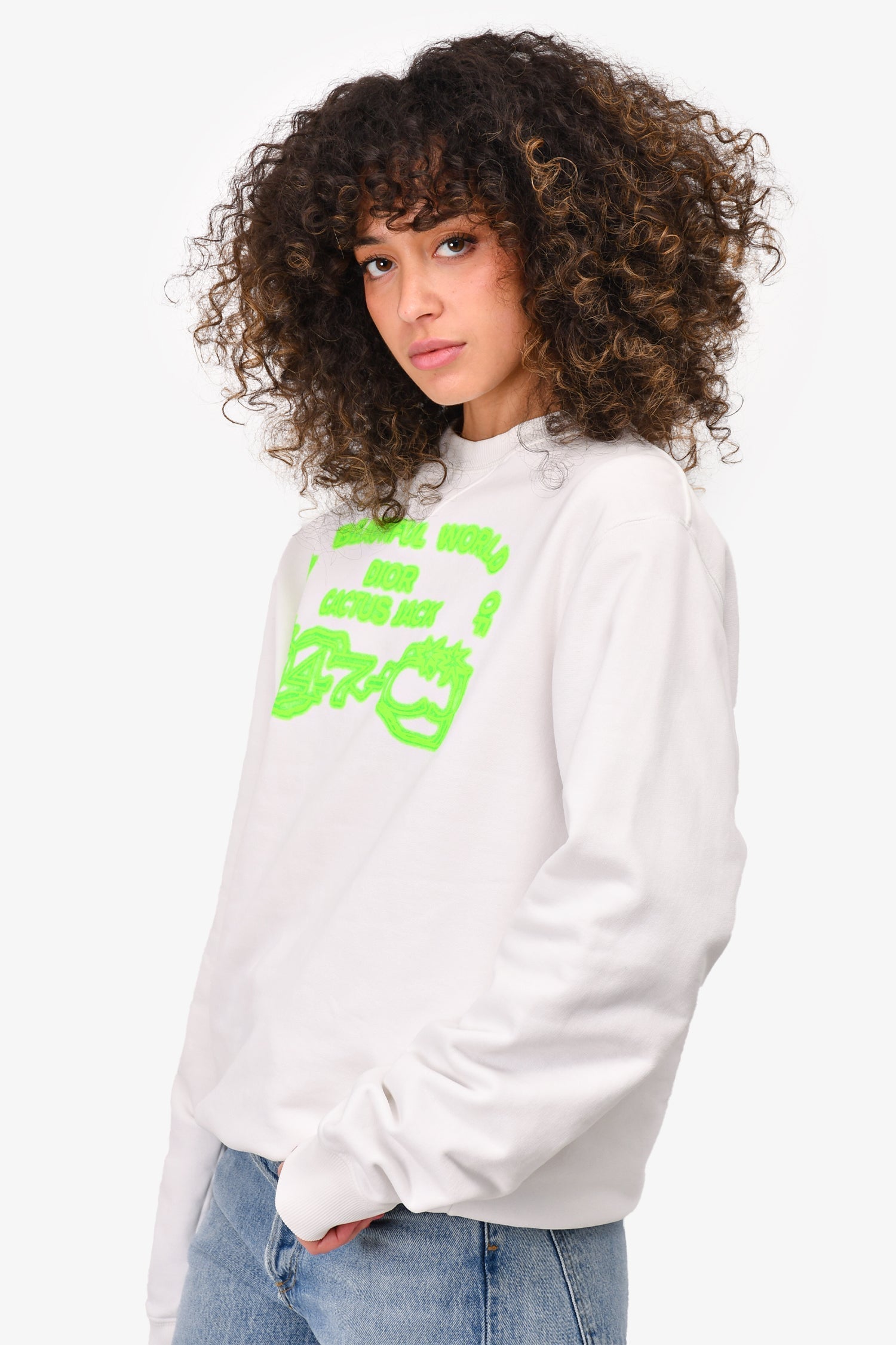 Christian Dior X Cactus Jack White/Green Logo Crew Neck Sweater Size M Mens