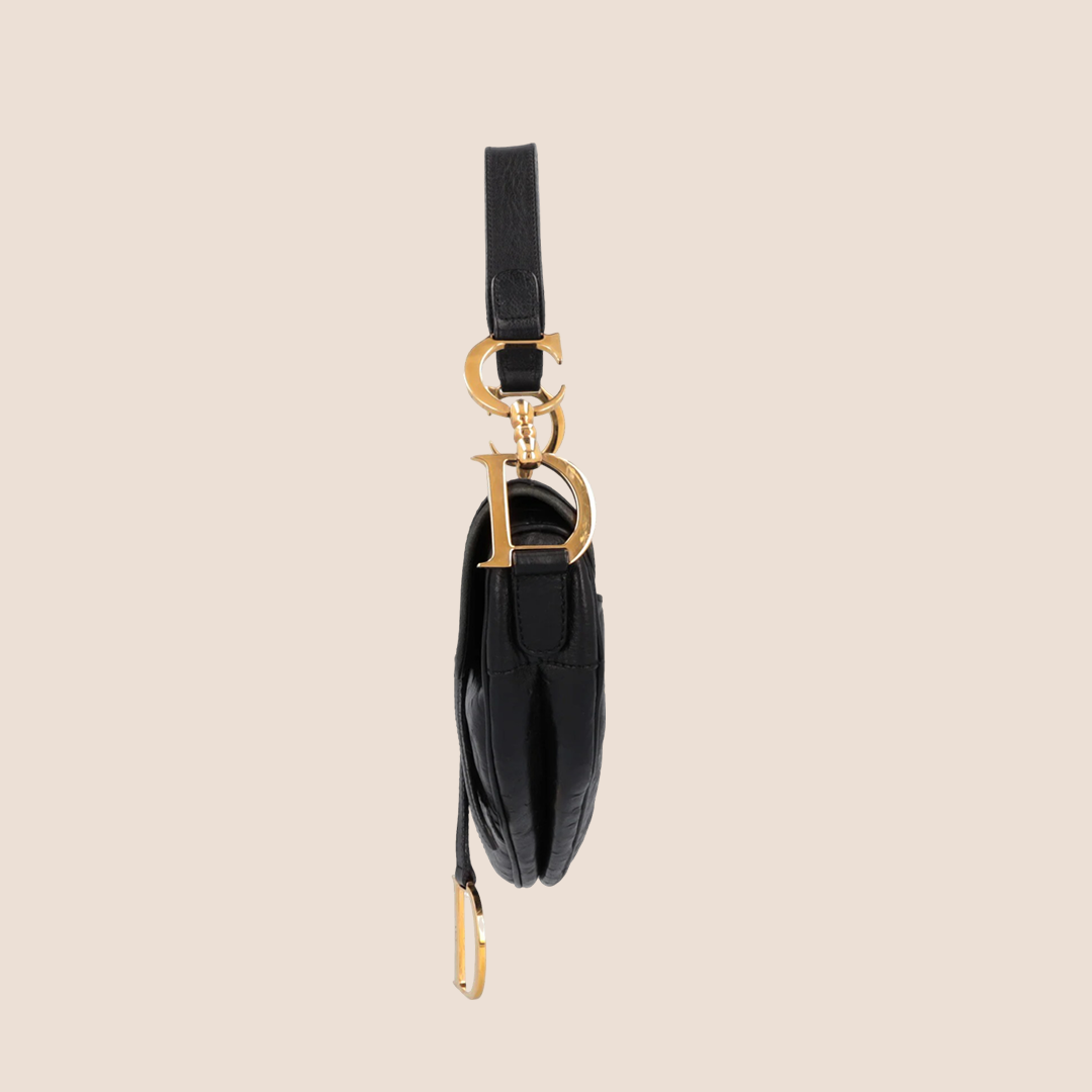 CHRISTIAN DIOR 2000 BLACK OSTRICH SADDLE BAG