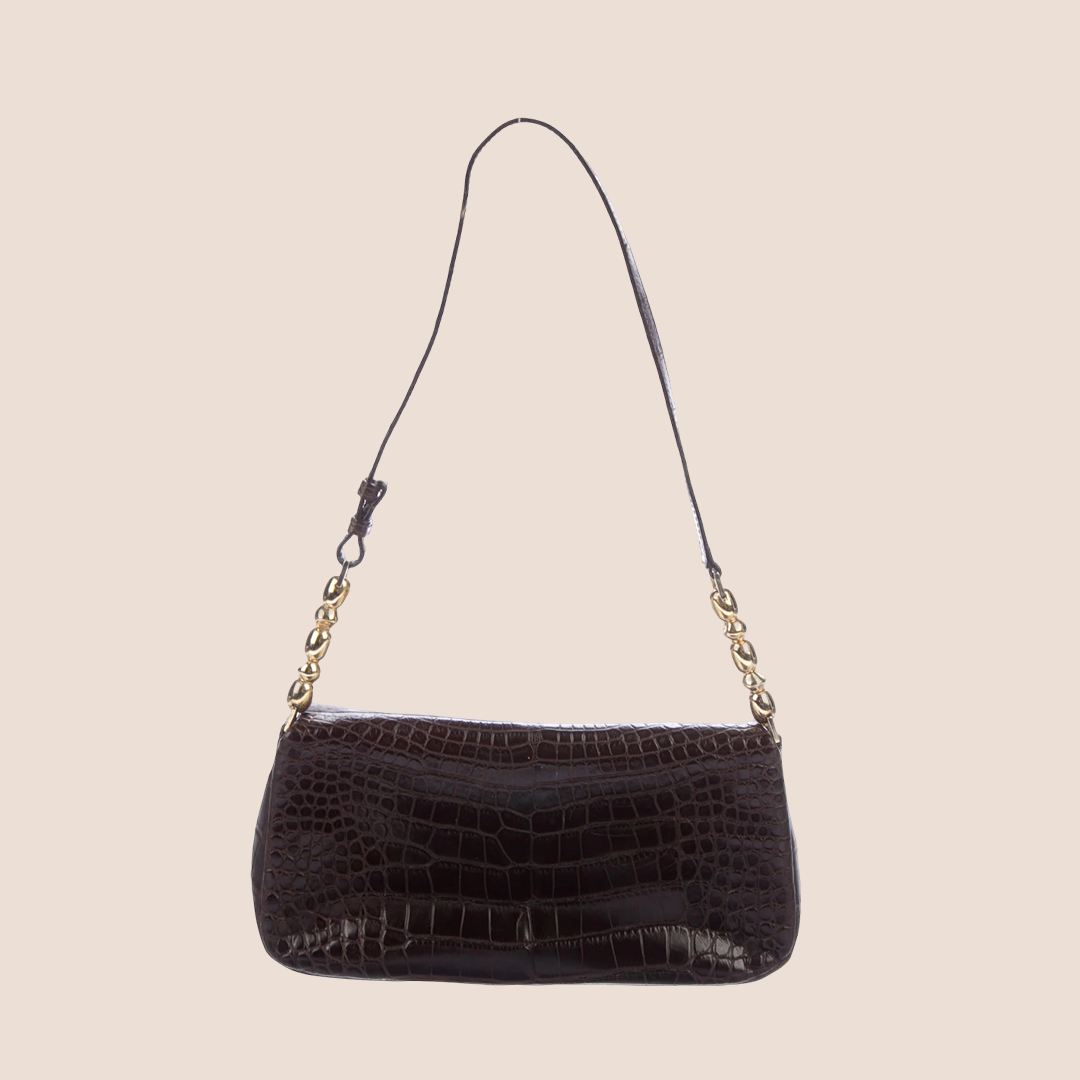 Vintage Christian Dior 2000 Brown Ostrich & Crocodile Malice shoulder bag.