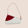 This bag features white neutrals leather, antiqued silver-tone hardware, single shoulder strap. nylon lining, single interior pocket and zip closure at top.