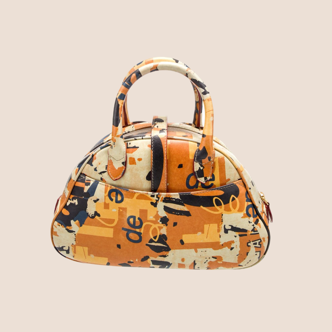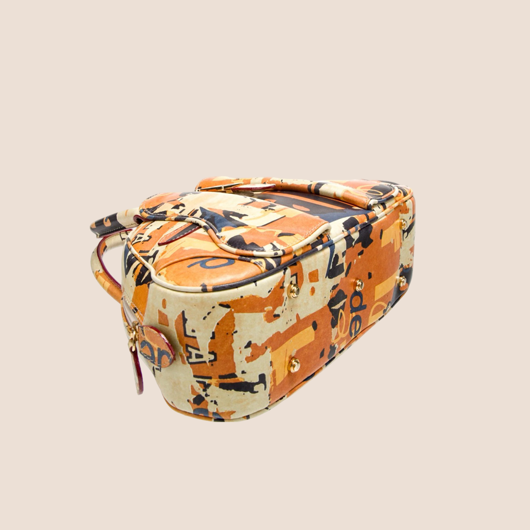 CHRISTIAN DIOR 2001 ORANGE PRINTED DOUBLE SADDLE BOWLER BAG