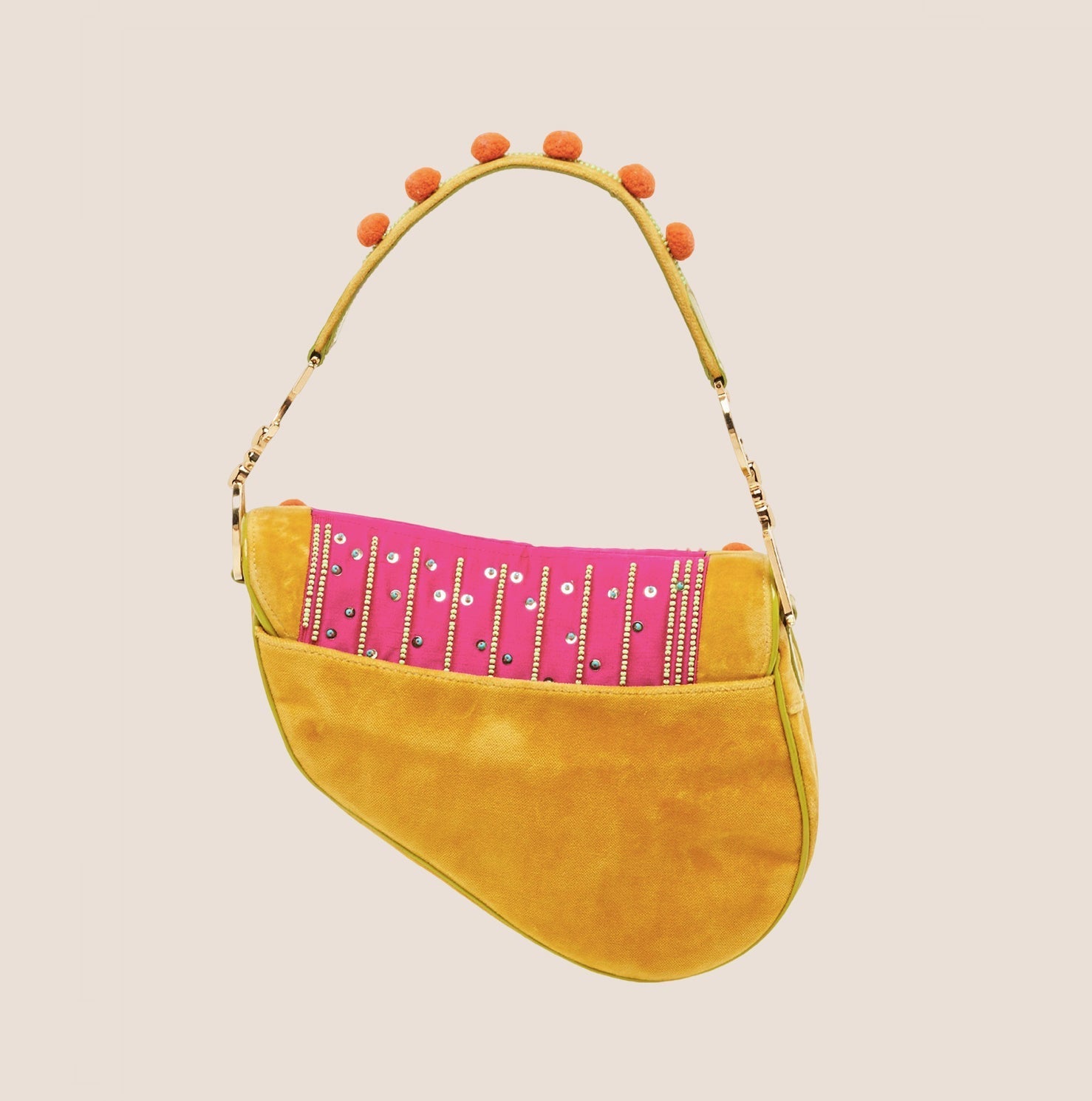 CHRISTIAN DIOR 2002 MULTICOLOR VELVET LIMITED EDITION POM POM SADDLE BAG