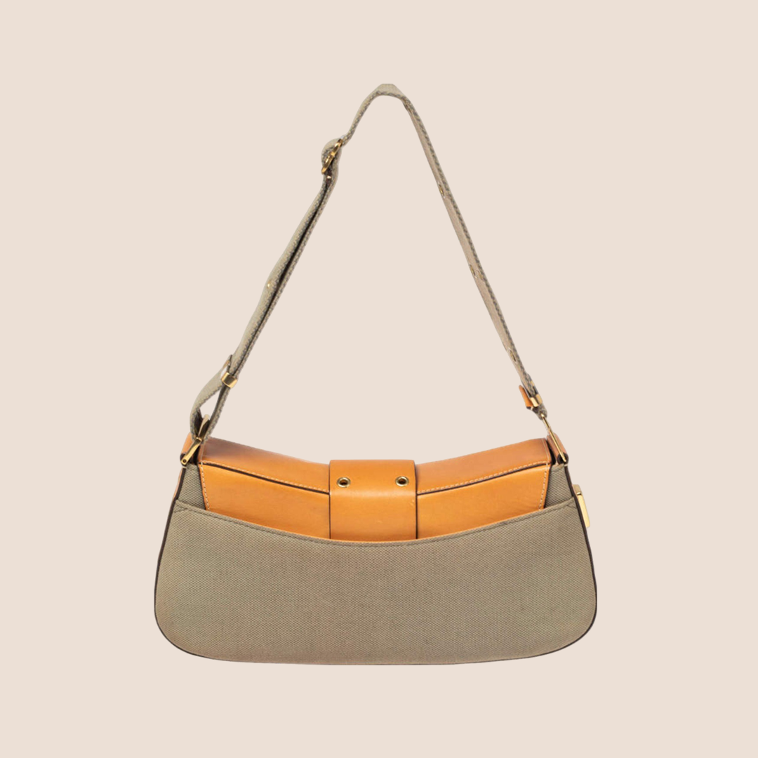 Vintage Christian Dior 2002 Tan & Khaki Green Canvas & Leather Street Chic Shoulder Bag.