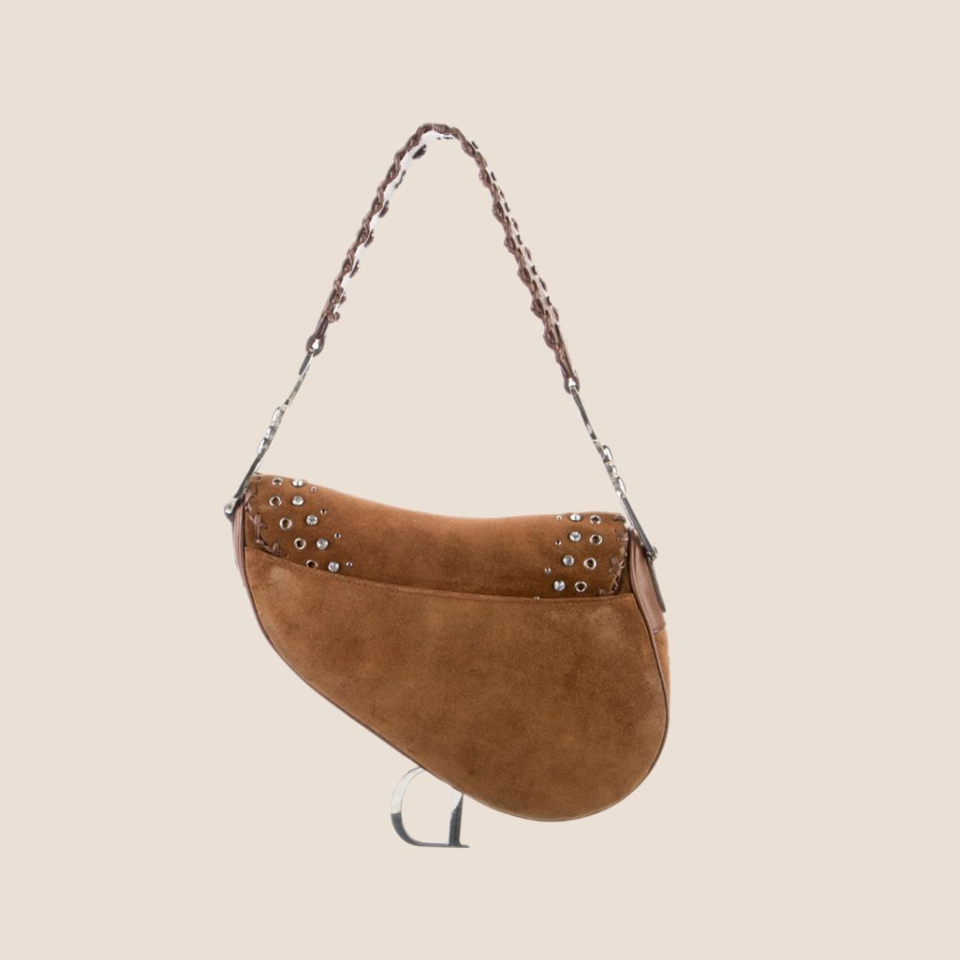 CHRISTIAN DIOR 2004 BROWN SUEDE EMBELLISHED WHIPSTITCH SADDLE BAG