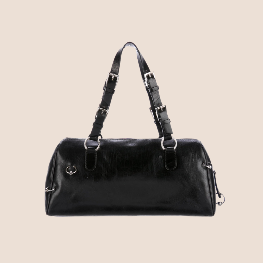 Vintage Christian Dior 2004 Hardcore Pierced Black Leather Boston bag.