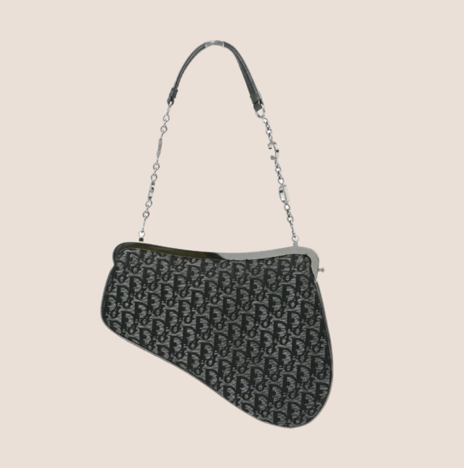 Vintage Christian Dior 2003 Grey Jacquard Trotter Micro Saddle bag.