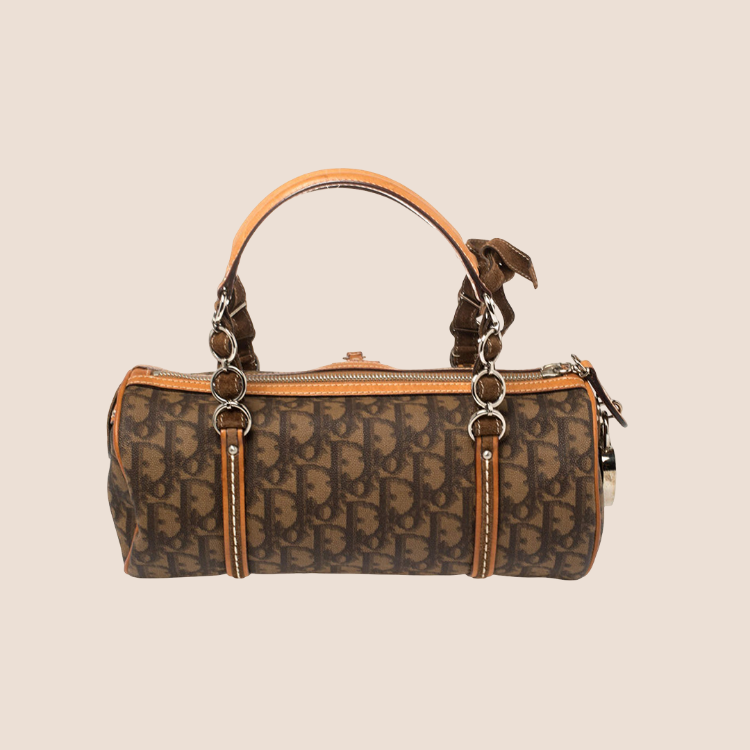 Vintage Christian Dior 2006 Brown Trotter Romantique Barrel bag.