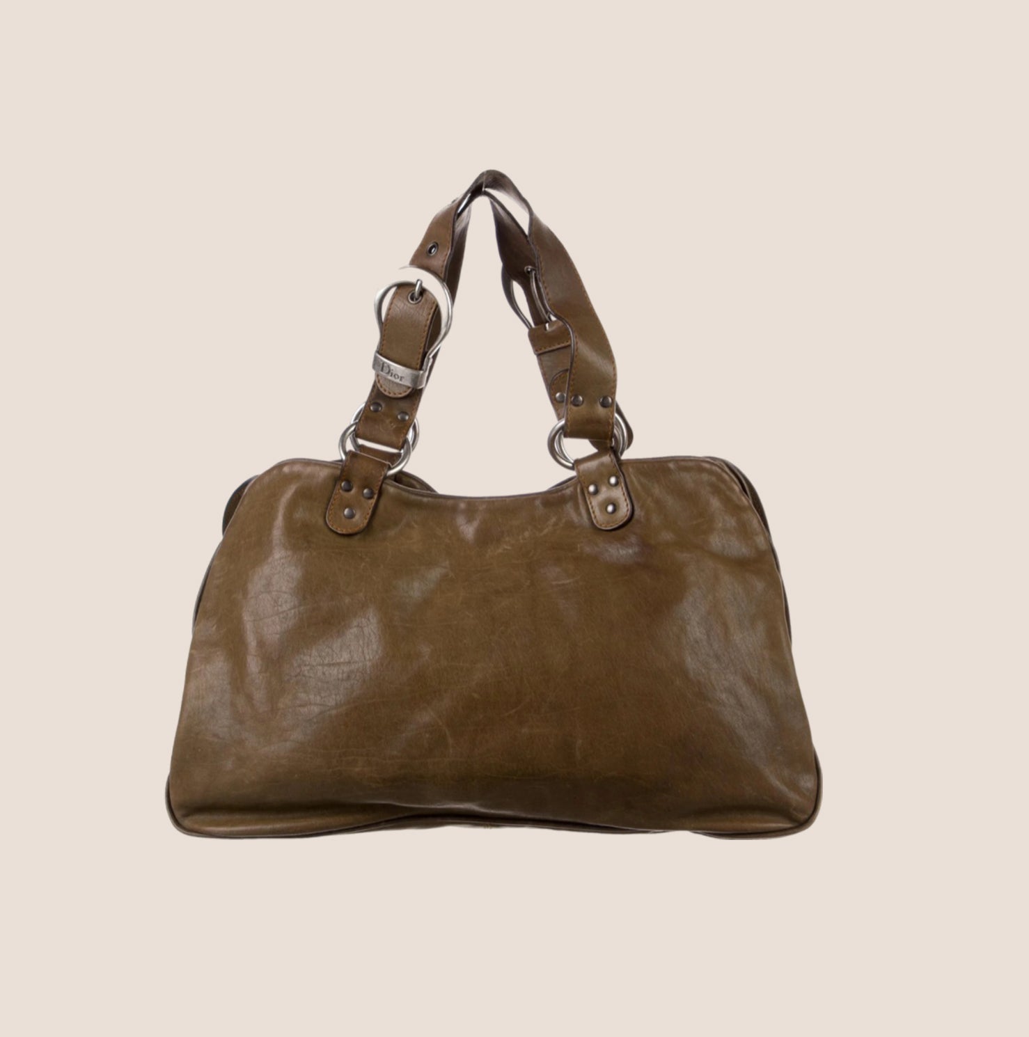 CHRISTIAN DIOR 2006 KHAKI LEATHER DOUBLE GAUCHO BAG