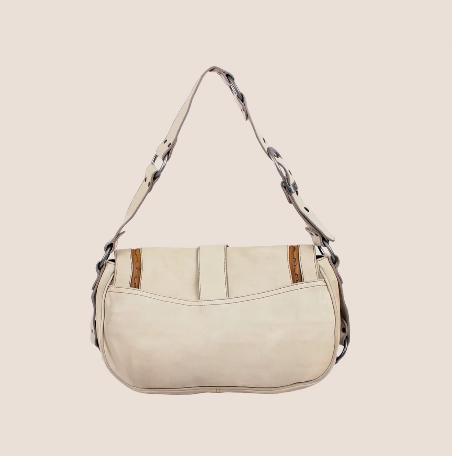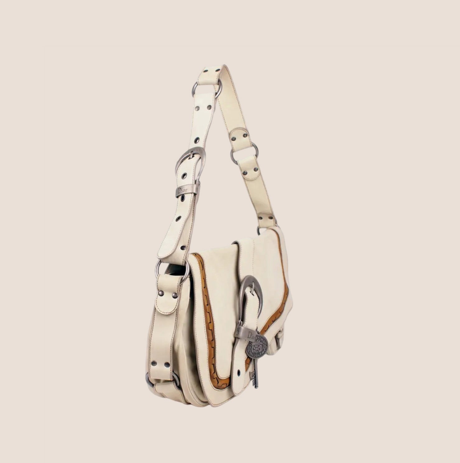CHRISTIAN DIOR 2006 WHITE LEATHER GAUCHO BAG