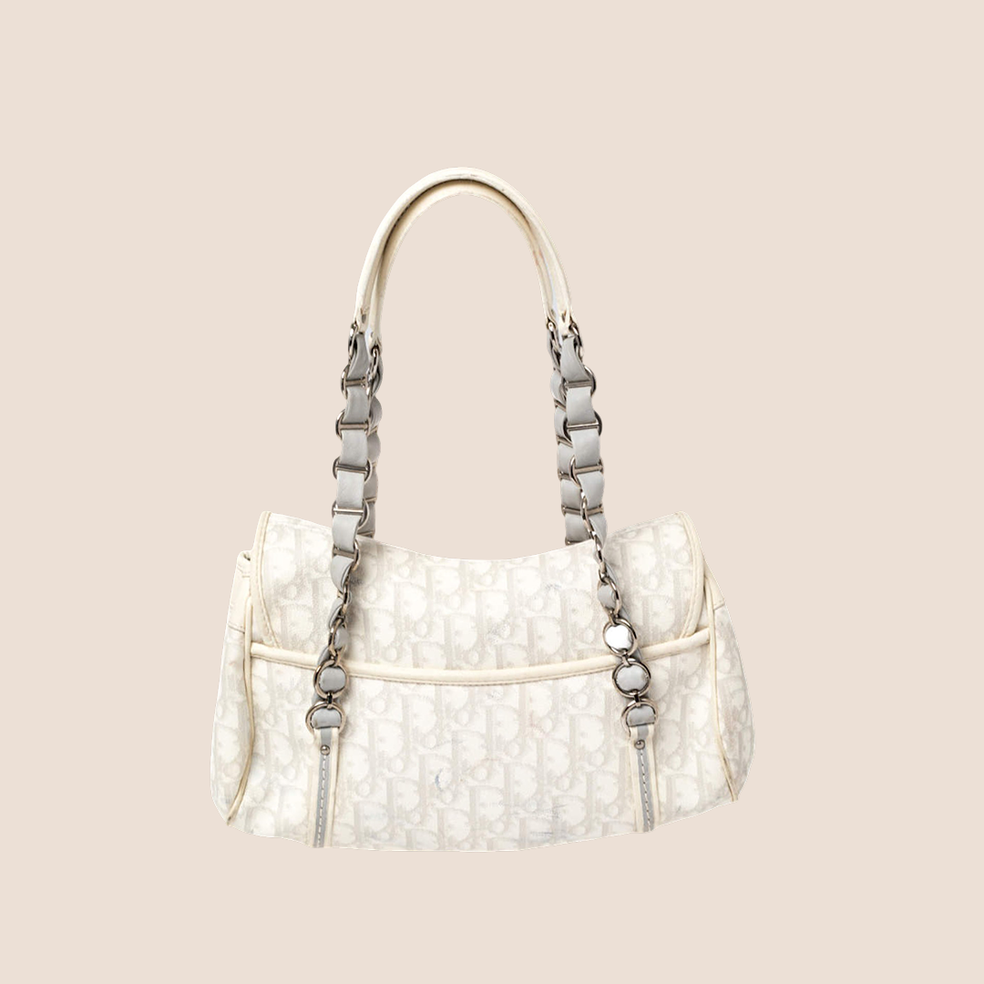 CHRISTIAN DIOR 2007 WHITE & GREY ROMANTIQUE TROTTER HANDBAG