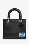 Christian Dior 2016 Black/Blue Leather Floral Printed Lady Dior