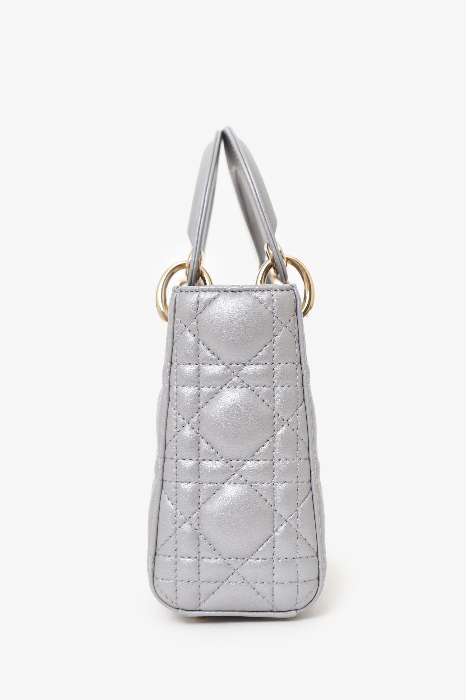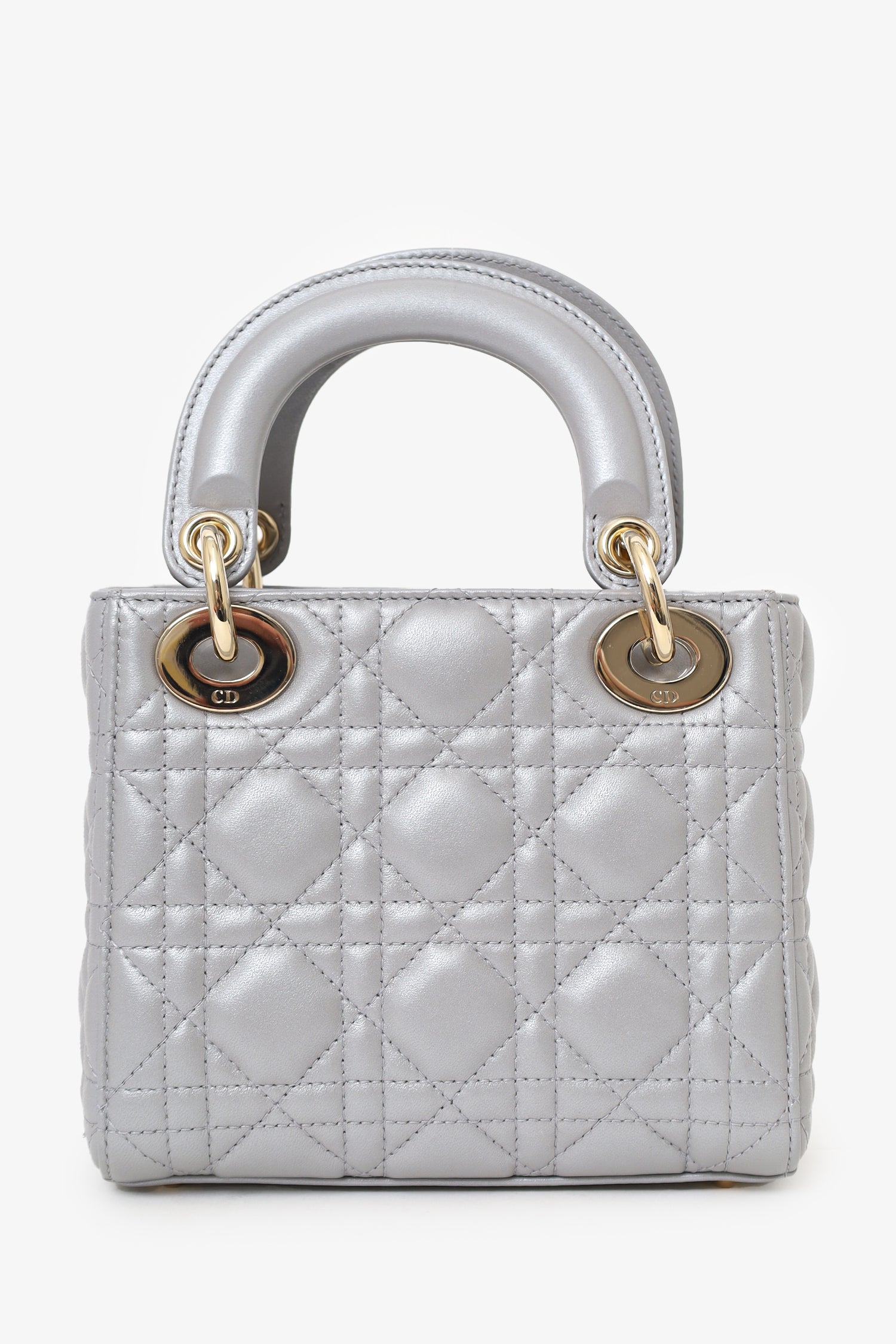 Christian Dior 2019 Grey Leather Cannage Mini Lady Dior with Strap