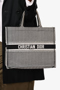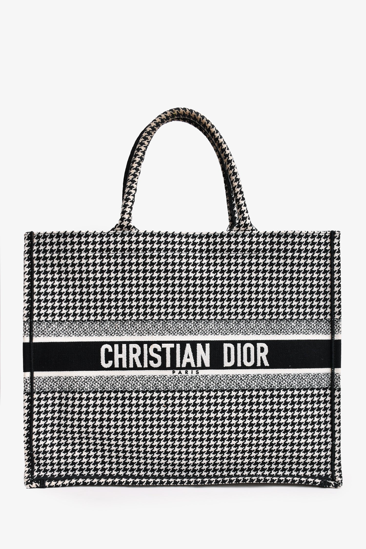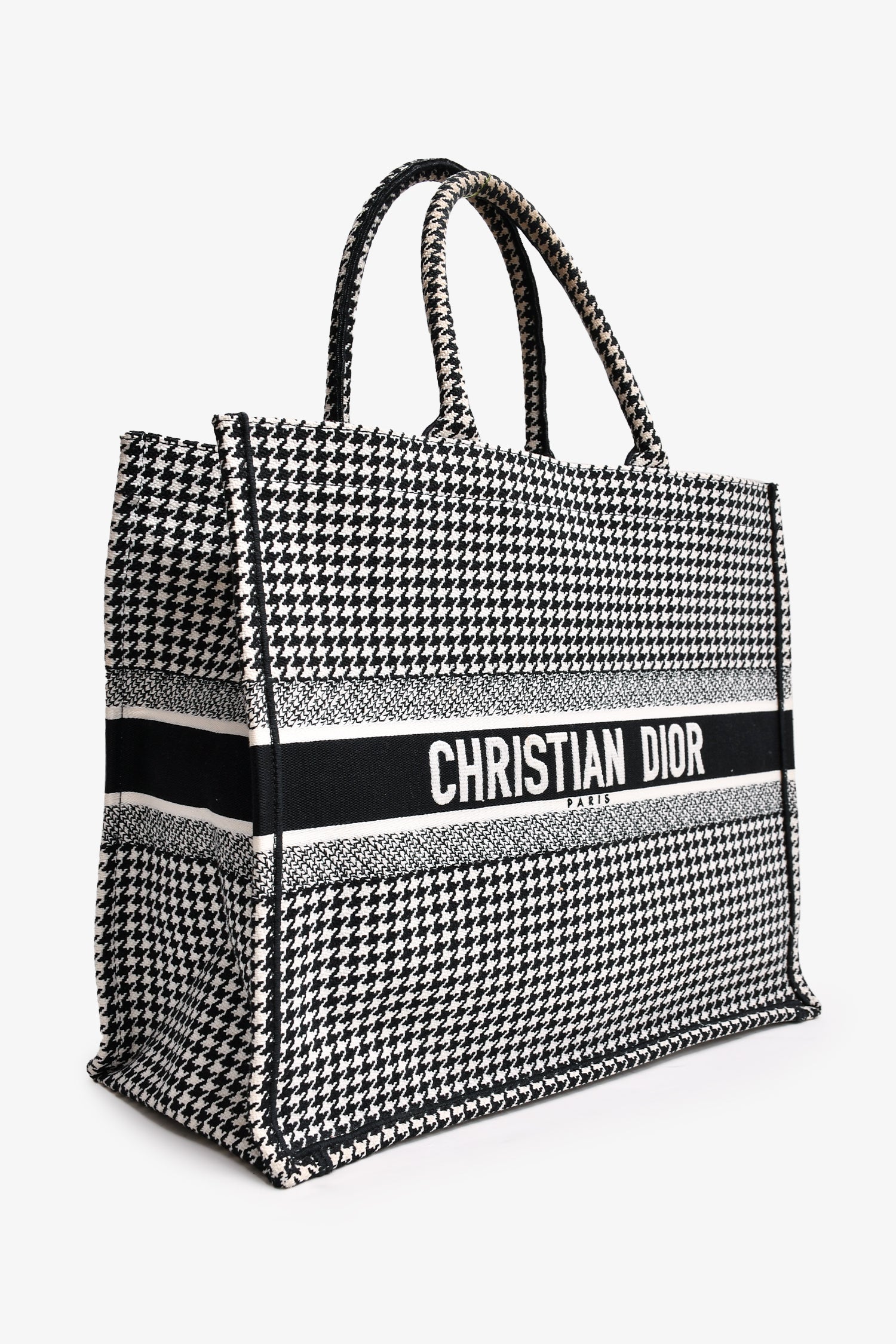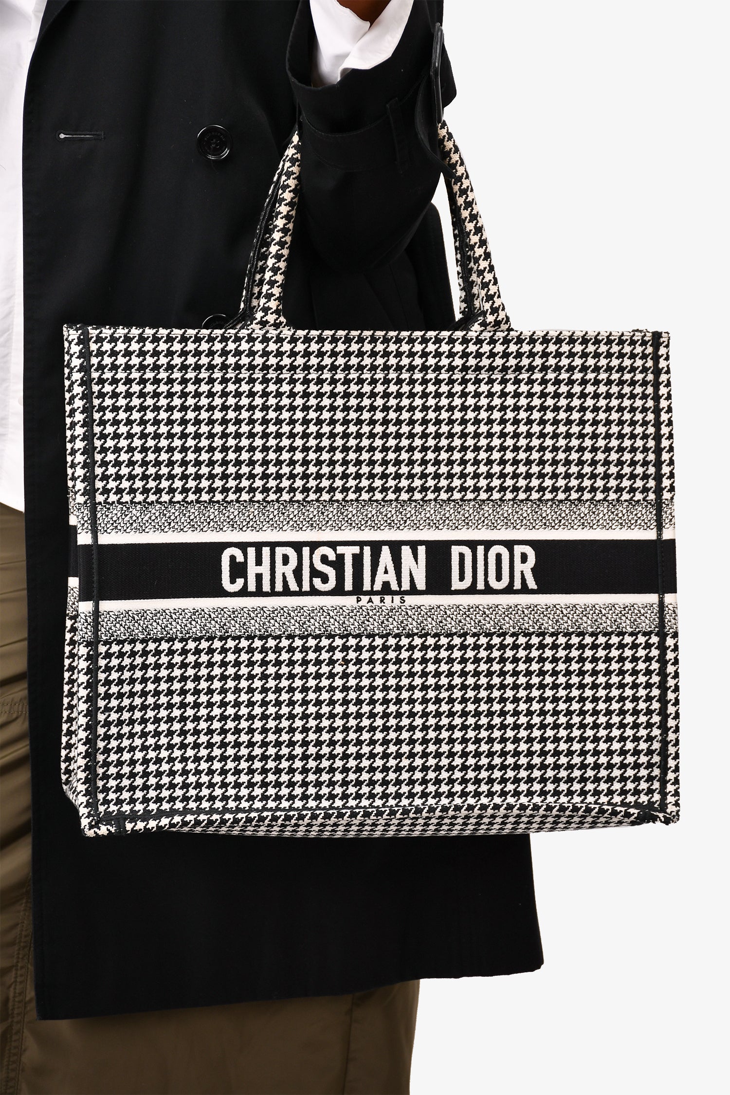 Christian Dior 2020 Black/White Houndstooth Patterned Large Book Tote