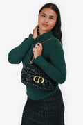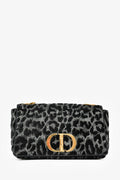 Christian Dior 2021 Black Grey Velvet Leopard Print Medium Caro Bag