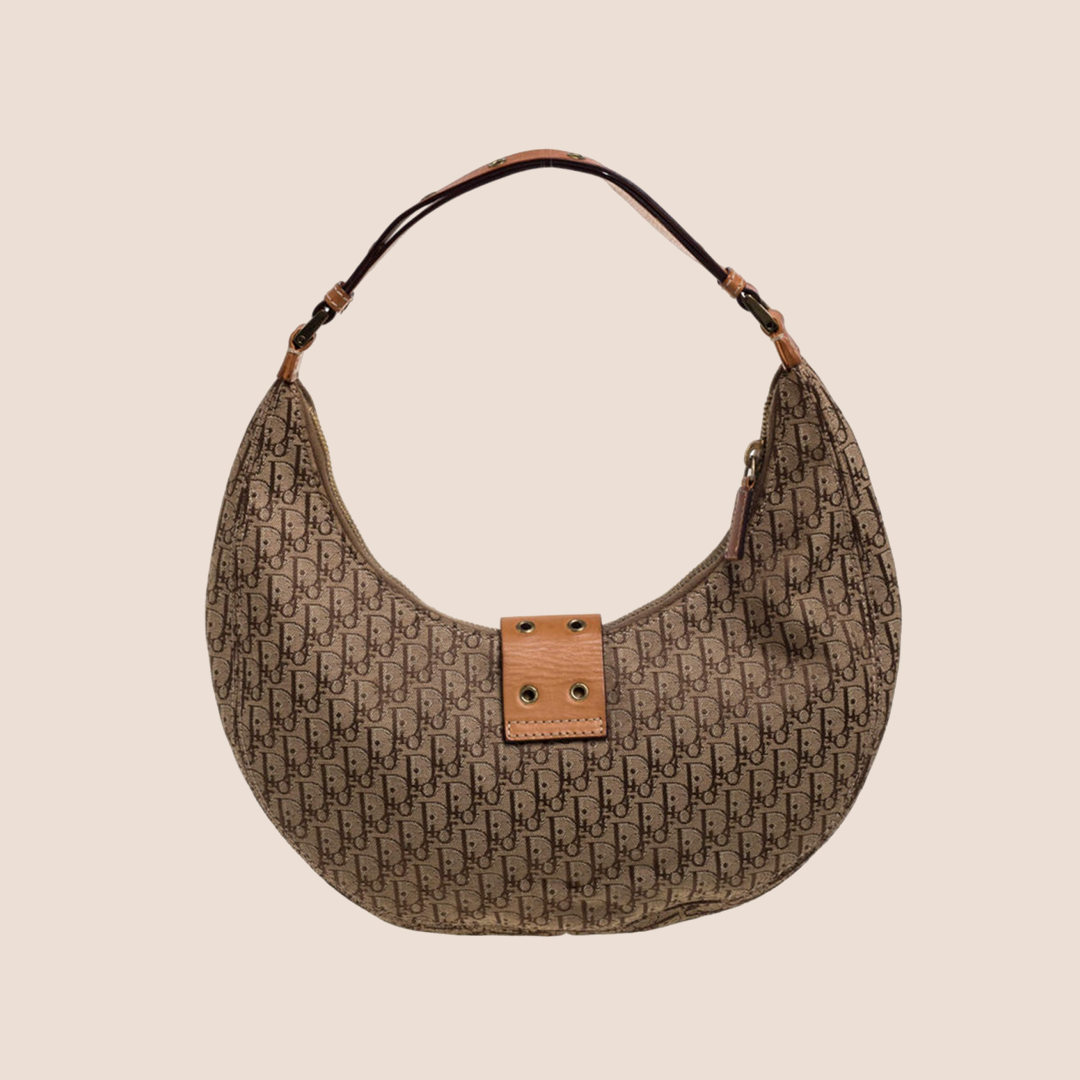 CHRISTIAN DIOR BEIGE & BROWN STREET CHIC HALF MOON BAG