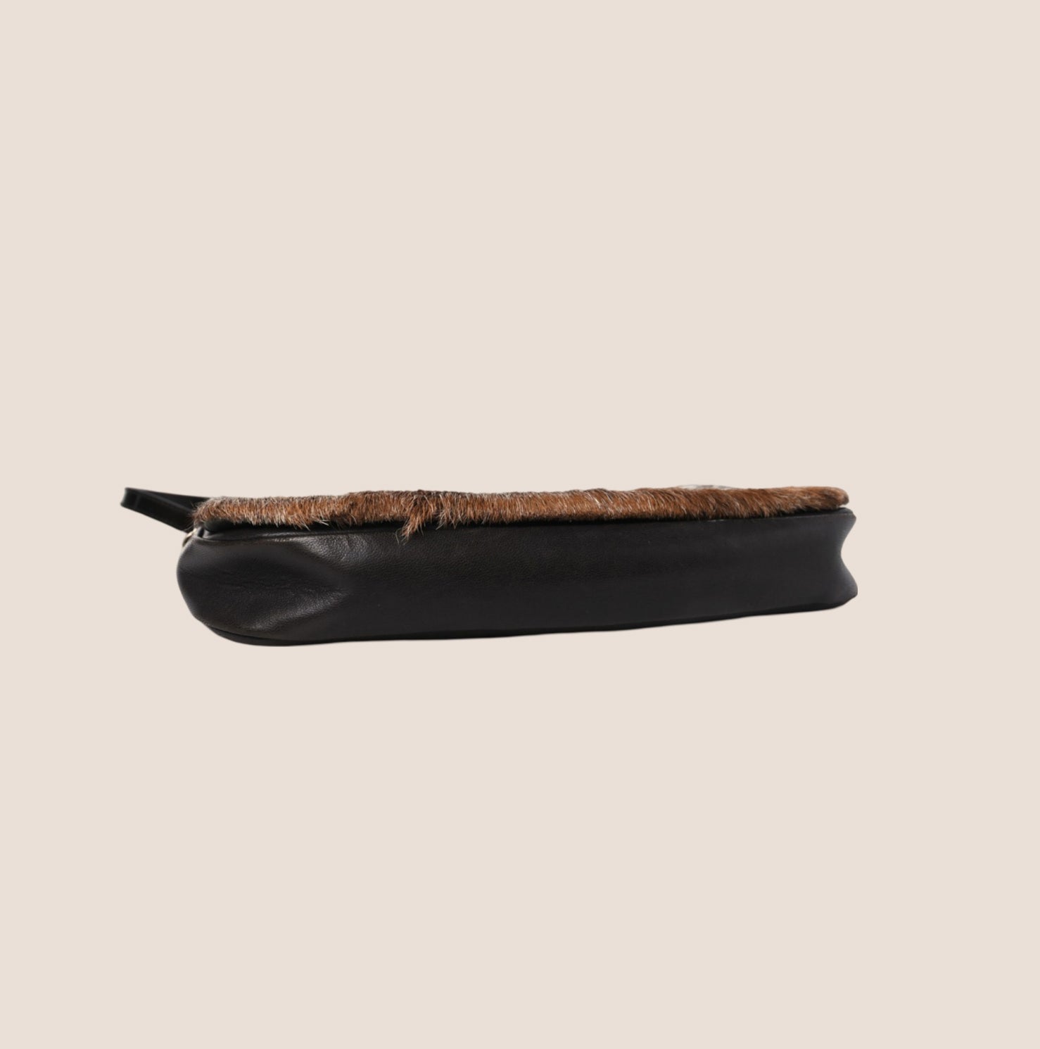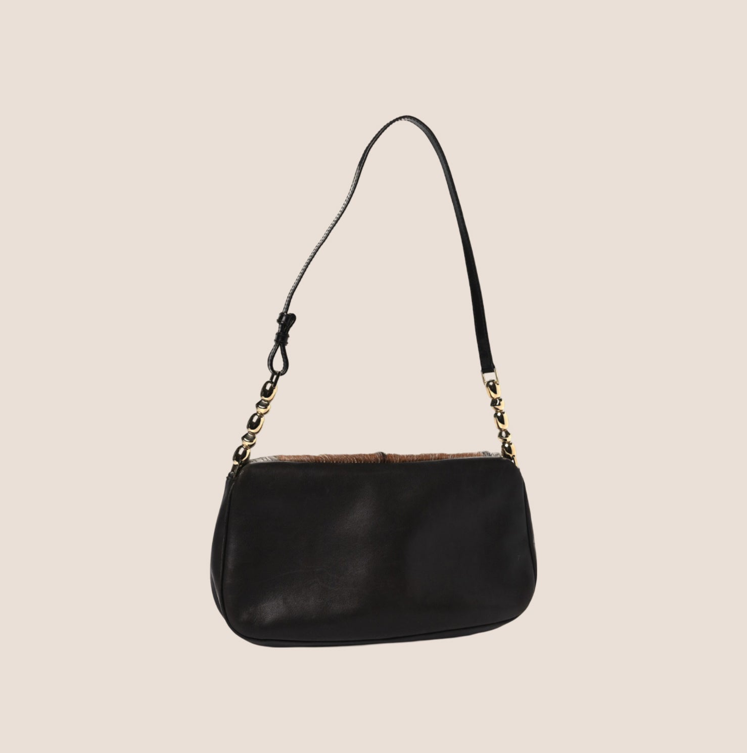 Vintage Christian Dior Black & Brown Pony Hair Malice Shoulder Bag.