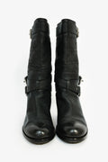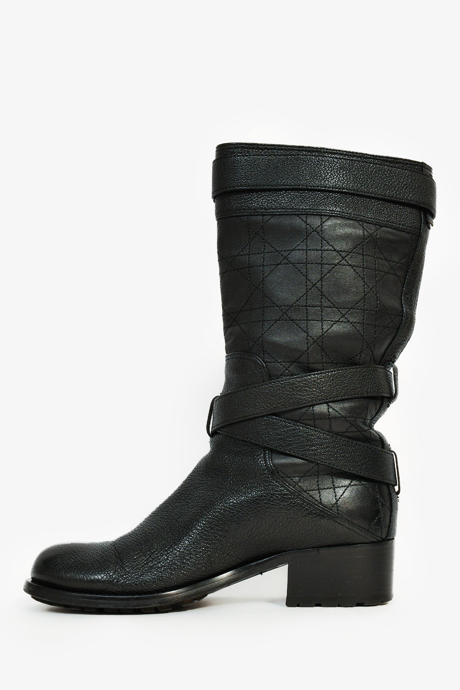 Christian Dior Black Cannage Leather Moto Boots Size 36