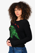 Christian Dior Black/Green Cashmere Embroidered Sweater Size 4