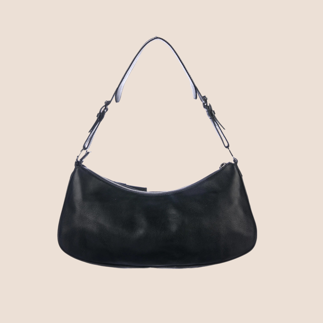 CHRISTIAN DIOR BLACK LEATHER CROISSANT SHOULDER BAG