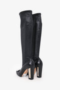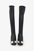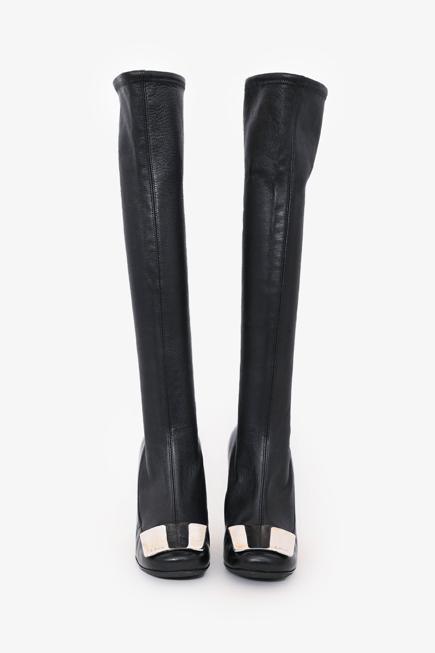 Christian Dior Black Leather Logo Plaque Knee High Boots Size 36