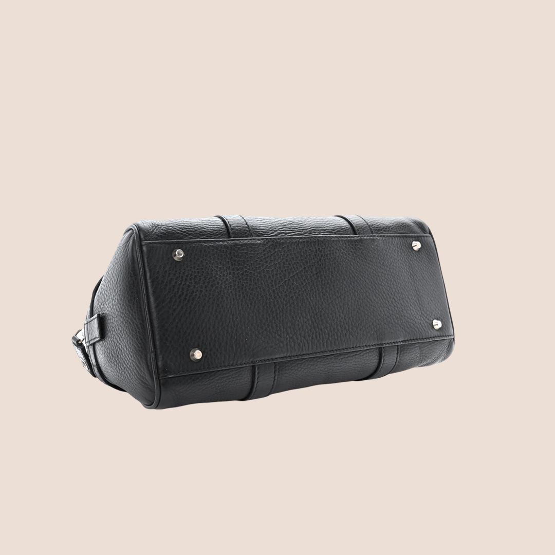 CHRISTIAN DIOR BLACK LEATHER LOGO SPELL OUT CHARM BOSTON BAG