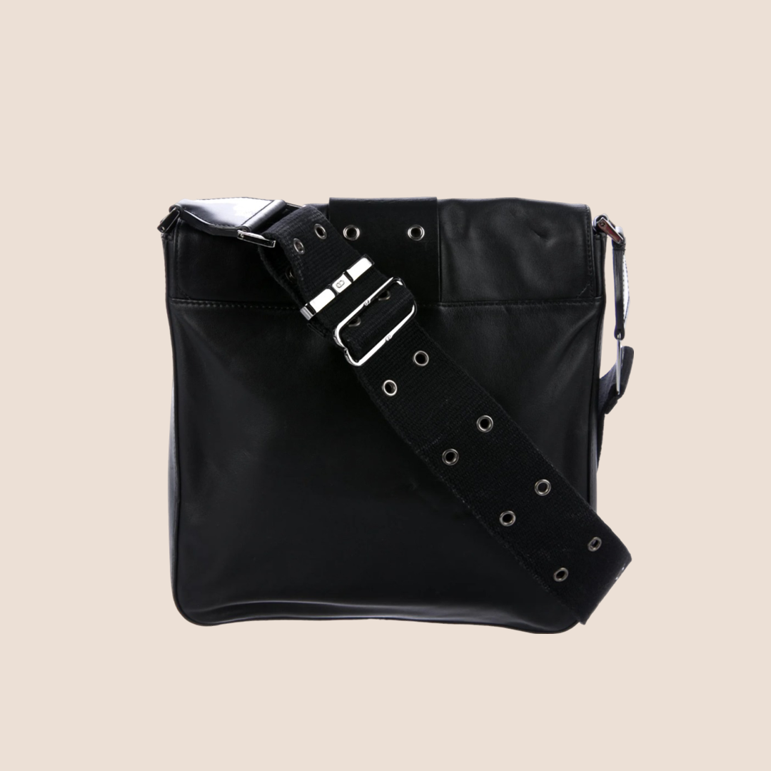 CHRISTIAN DIOR BLACK LEATHER STREET CHIC COLUMBUS MESSENGER BAG