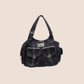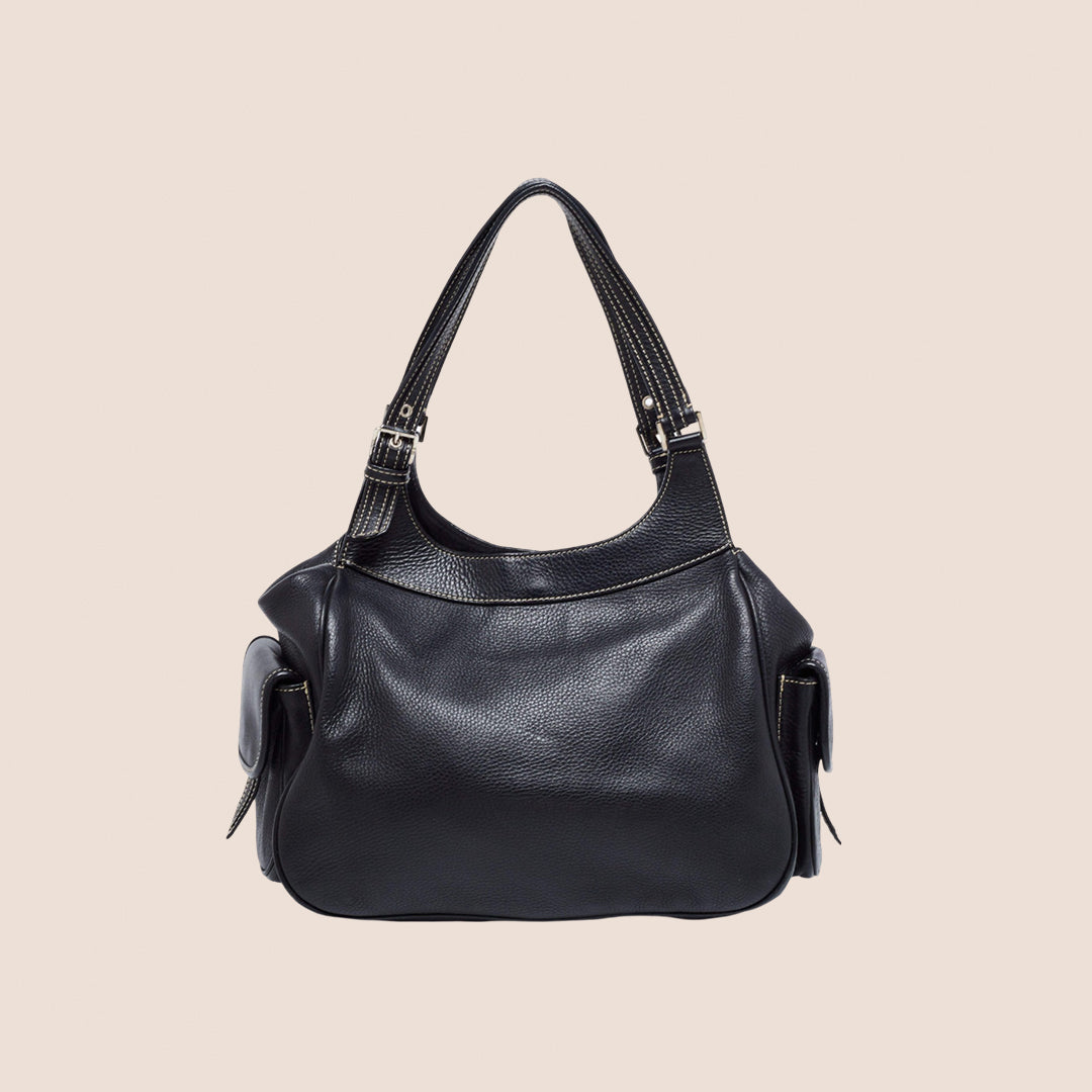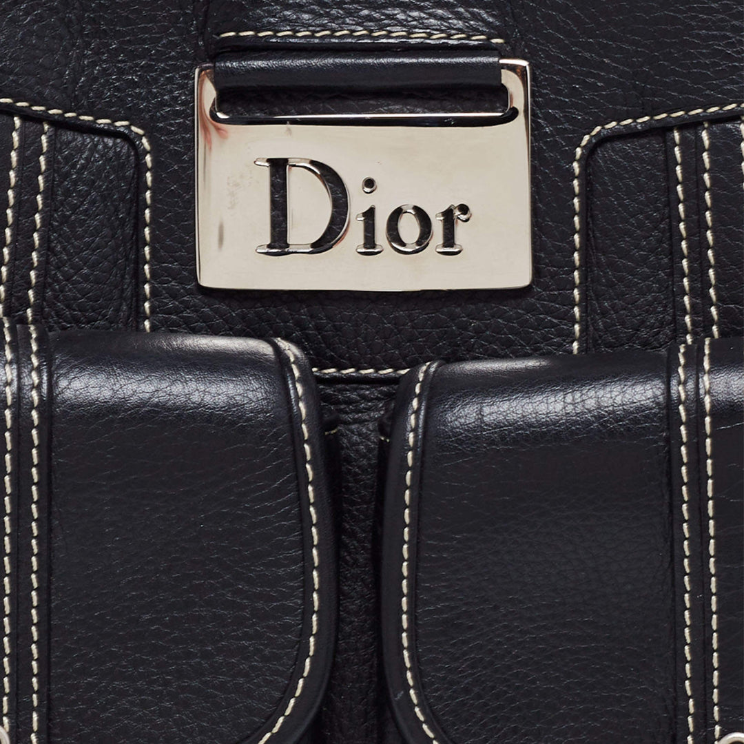 Vintage Christian Dior Black Leather Street Chic Multipocket Satchel bag.