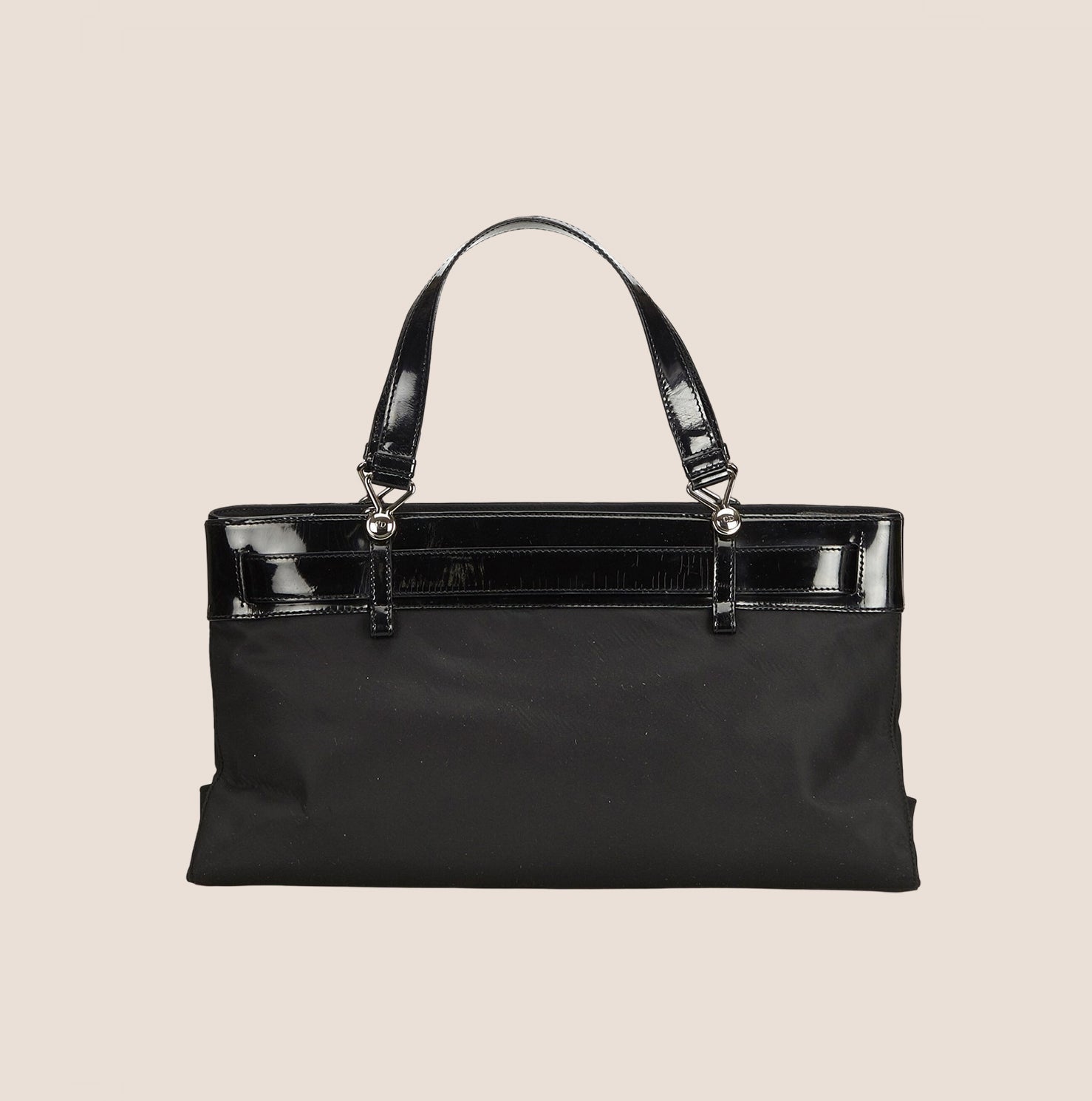 Vintage Christian Dior Black Nylon & Patent Leather Belted Everyday Bag.