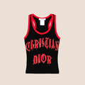 Christian Dior Black & Red Gothic Logo print sleeveless tank top.