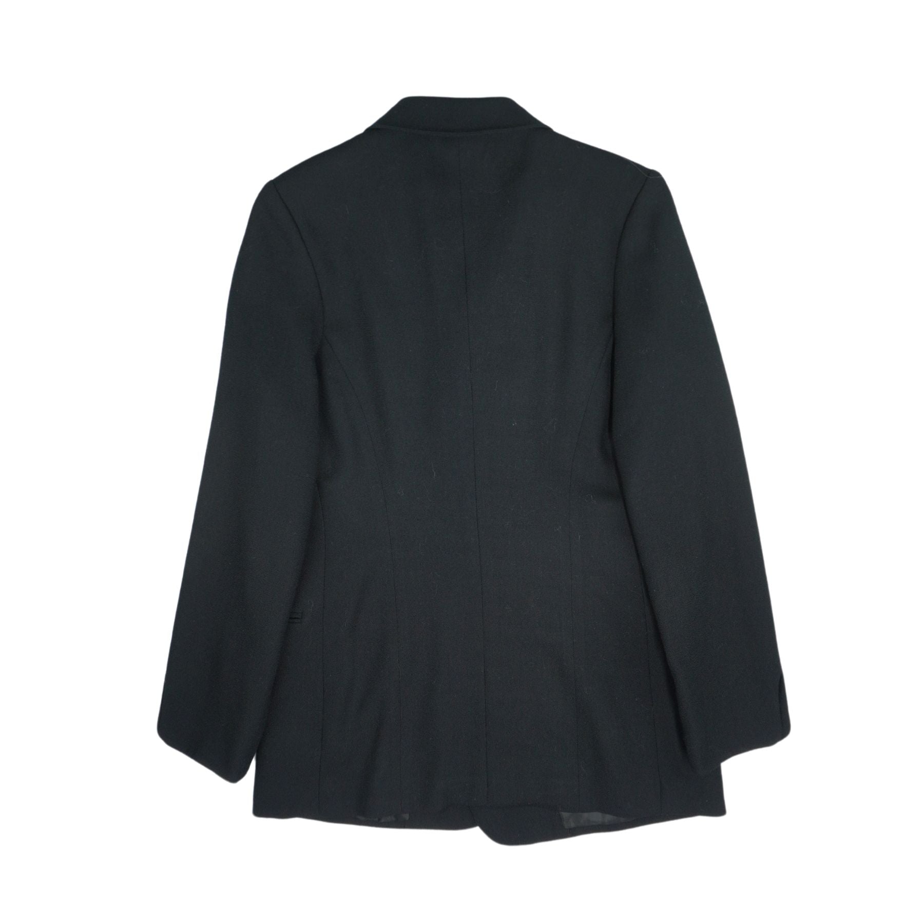 Christian Dior double-breasted blazer in black wool with three welt pockets on the front bottom, a patch pocket on the left breast and double button closure.
