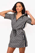 Christian Dior Blue Oblique Jacquard Hooded Mini Dress Size 2 US