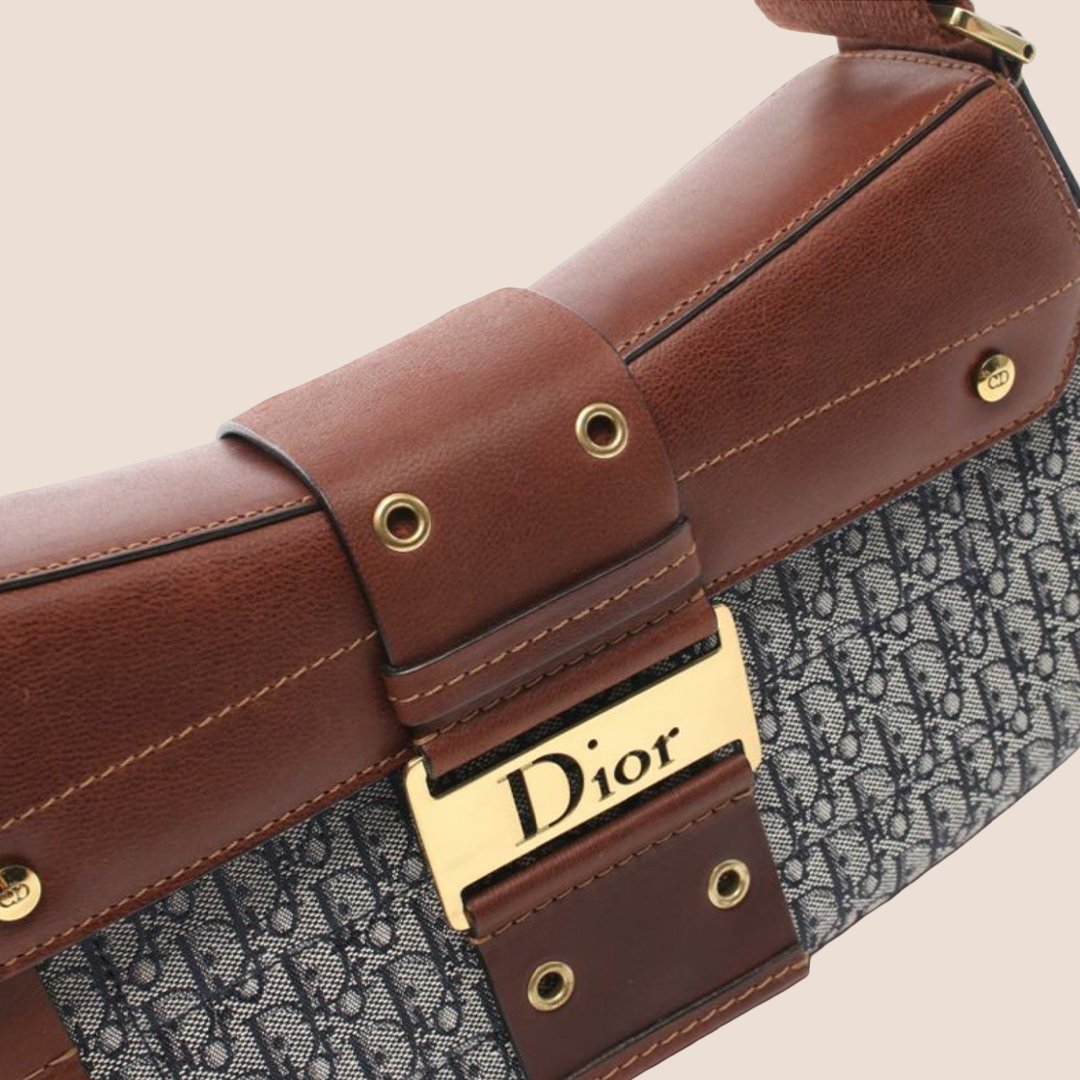 Vintage Christian Dior 2002 Brown & Navy Diorissimo Canvas Street Chic Columbus bag.
