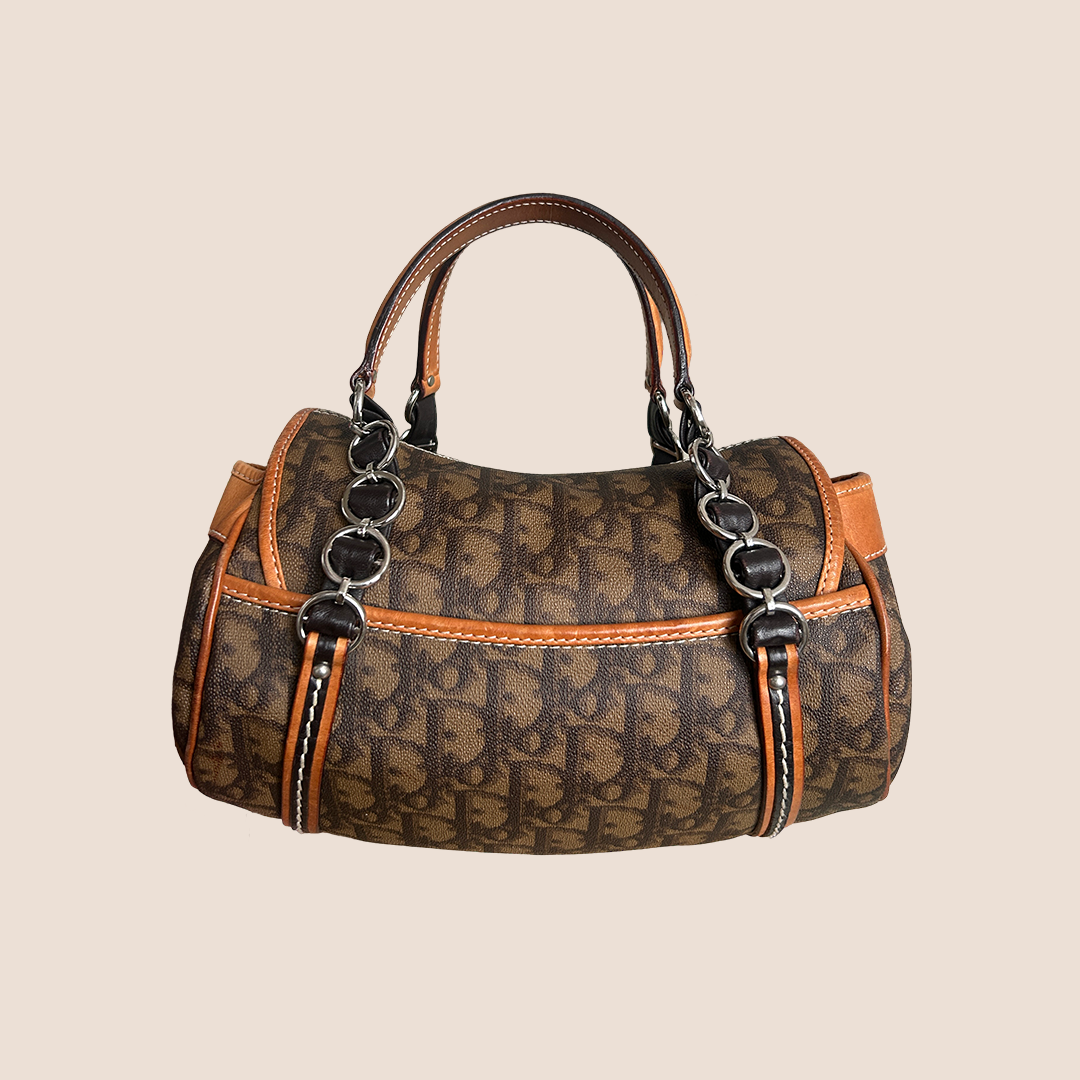 CHRISTIAN DIOR BROWN ROMANTIQUE MINI HEART CHARM HANDBAG