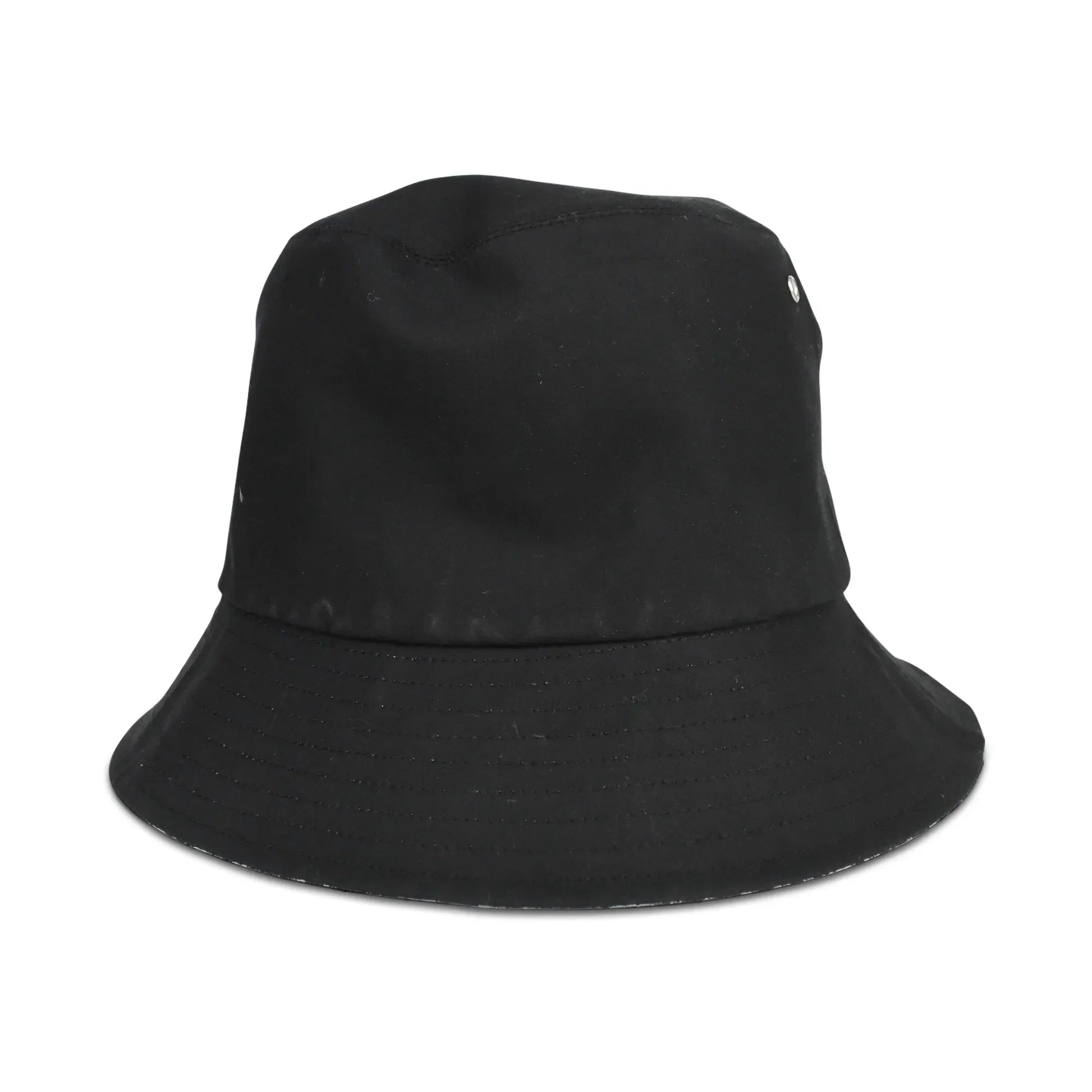 Christian Dior bucket hat in black nylon with a black and beige logo monogram interior. Features silver grommets.