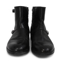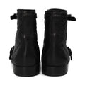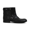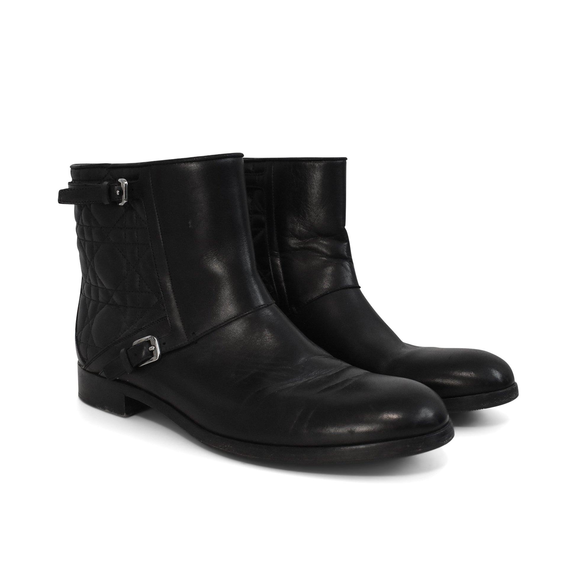 Christian Dior ankle boots in black leather with cannage quilting. Features two small buckle straps on the outer sides and low wooden block heel.