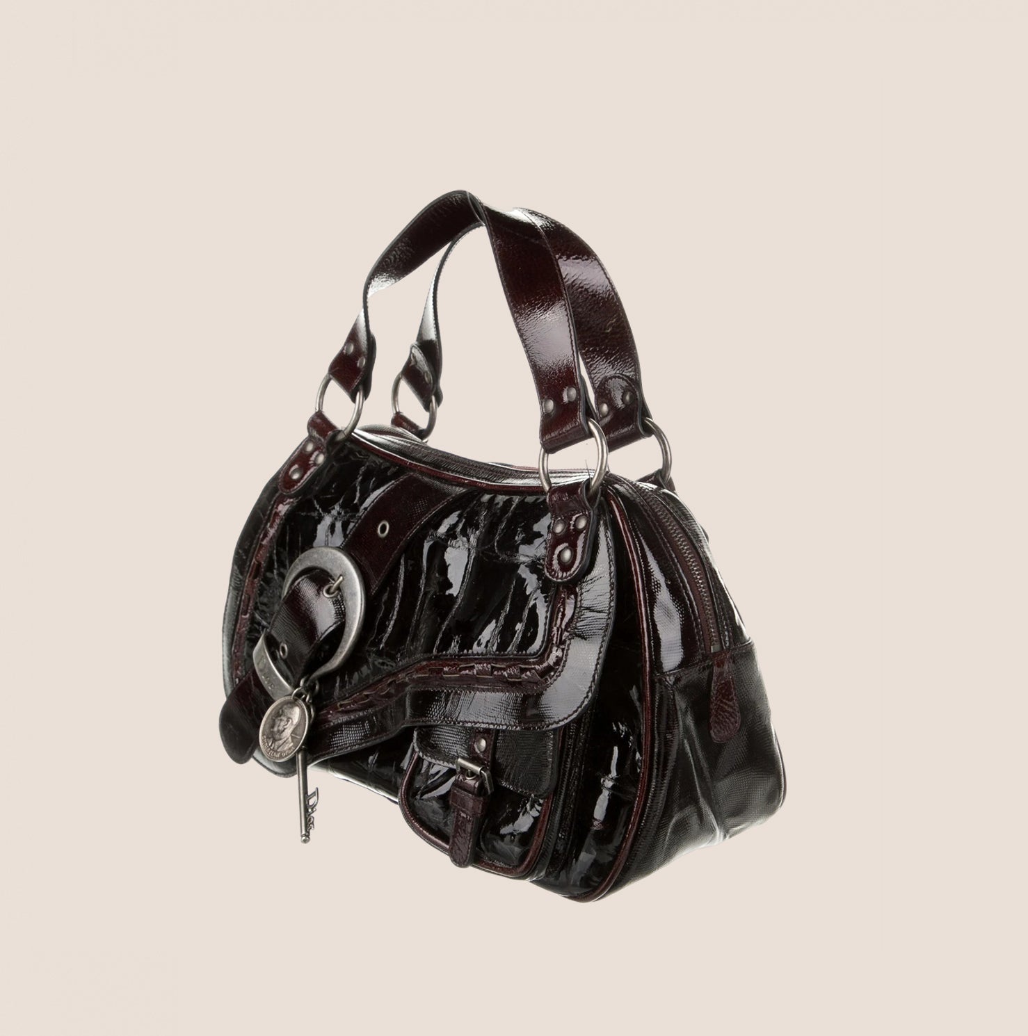 Vintage Christian Dior 2006 Crocodile-Embossed Patent Gaucho Saddle Handbag.