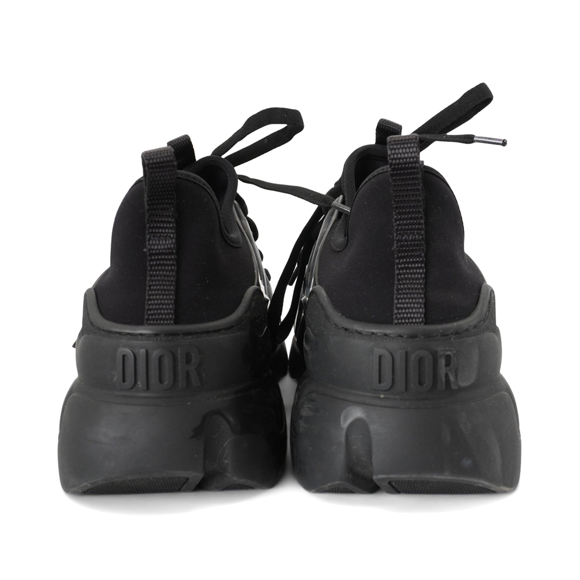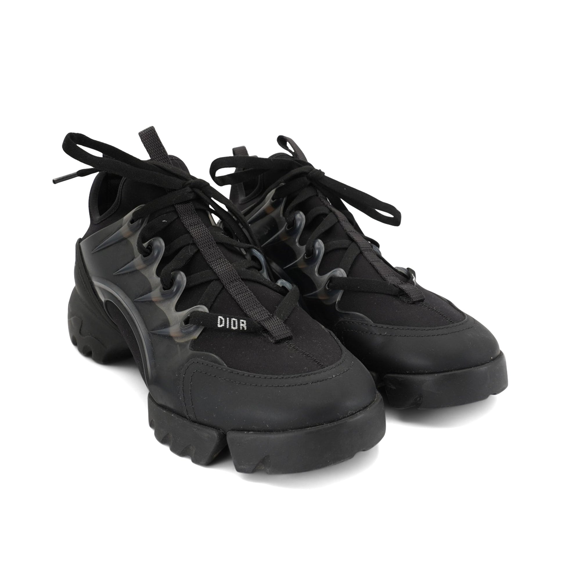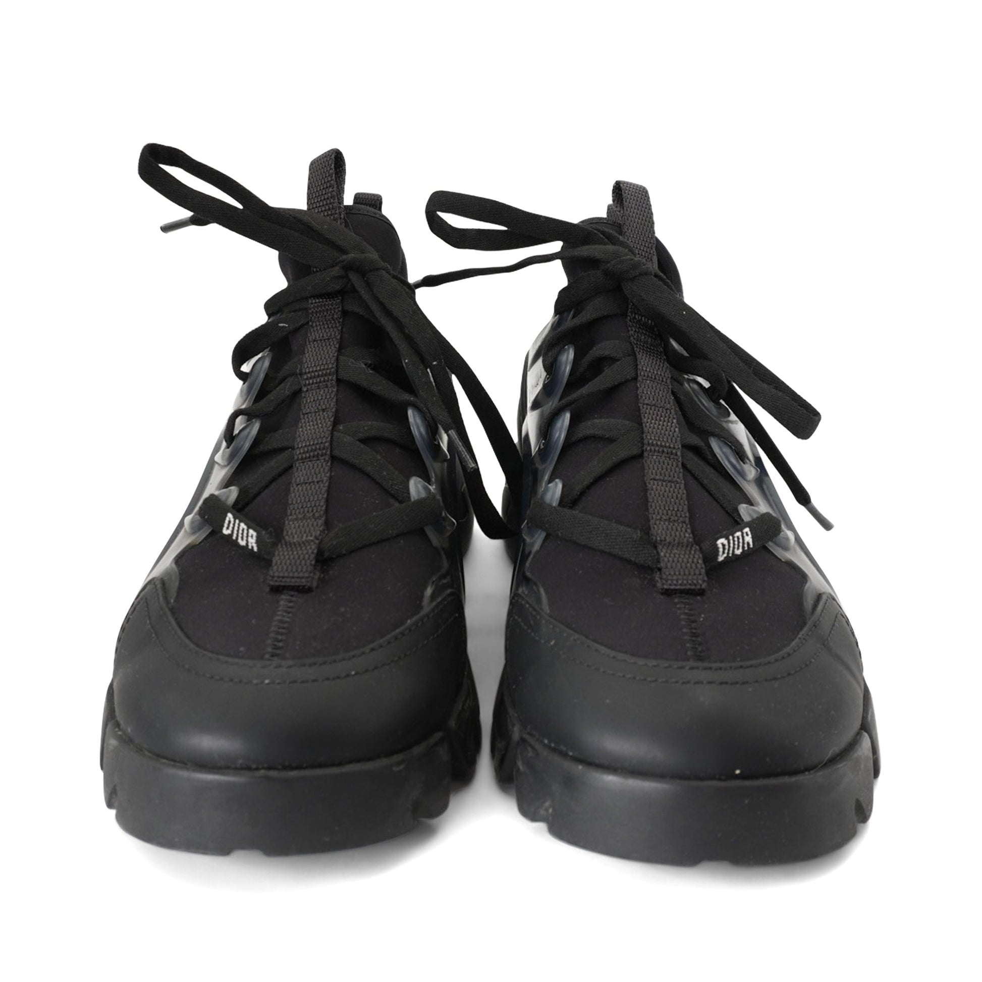 Christian Dior 'D-Connect' sneakers in black neoprene and leather with clear rubber side panels and a chunky tonal soles.