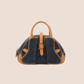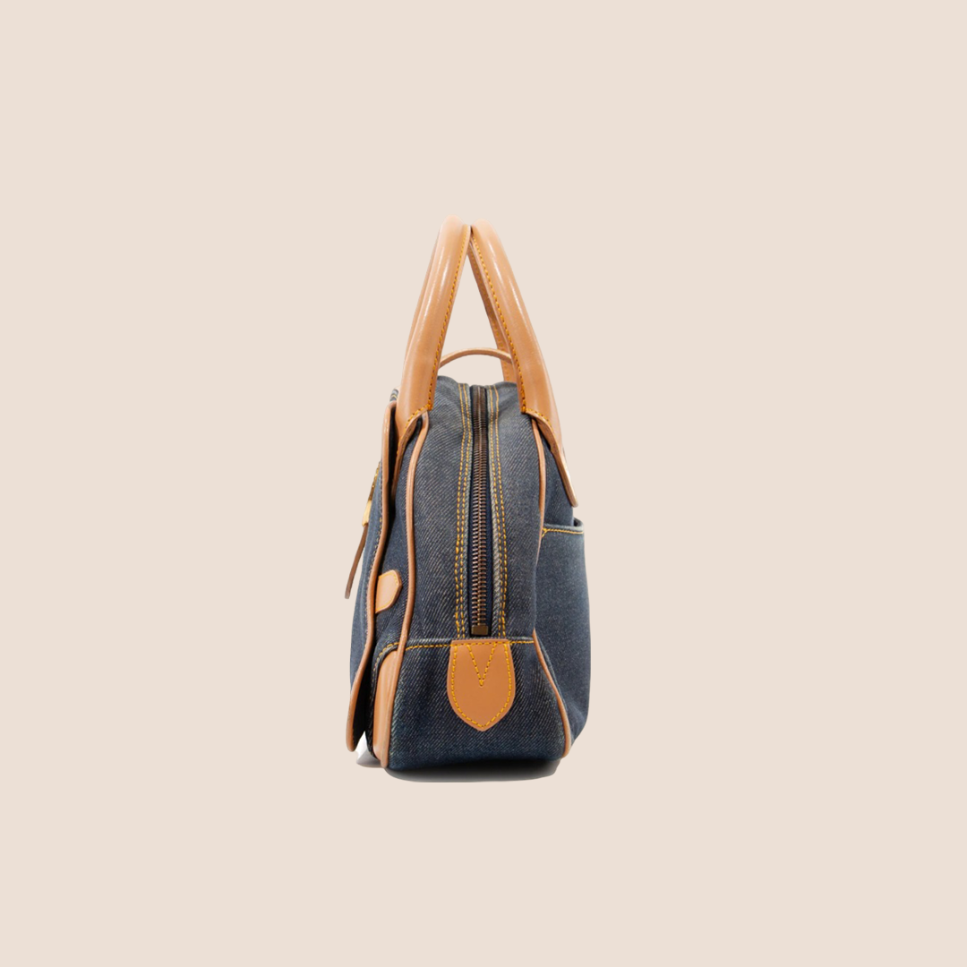 Vintage Christian Dior Denim Canvas & Tan Leather Saddle Mini Bowler bag.