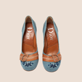 CHRISTIAN DIOR DENIM & TAN LEATHER CD LOGO PUMPS