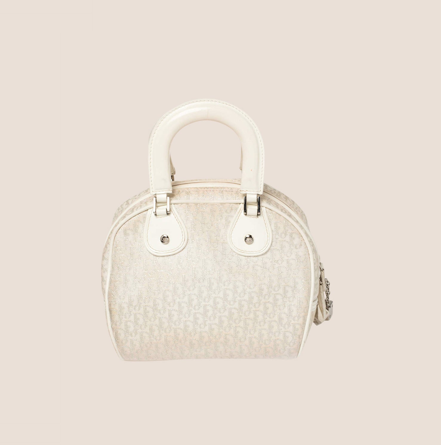 Vintage Christian Dior White Oblique Canvas & Leather Gambler Dice Bag.