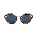 Christian Dior 'Elliptic' rounded sunglasses in brown tortoiseshell acetate with gold metal hardware, small stud details, and a pink acetate interior.