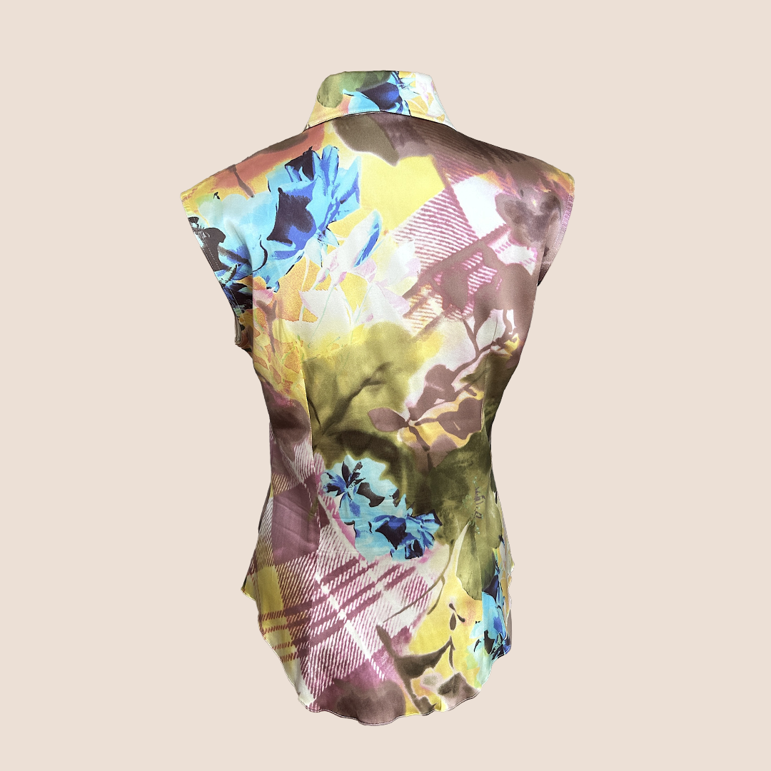 CHRISTIAN DIOR FALL 2001 SILK FLORAL CHECK SLEEVELESS SHIRT