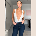 Vintage Christian Dior Fall 2003 White One-Piece Swimsuit with silver crystal detail embellishments on each strap.