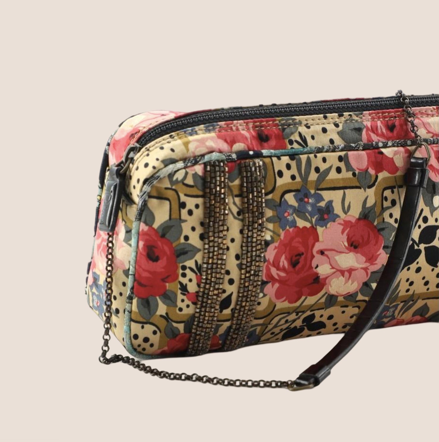 Vintage Christian Dior Floral Satin Beaded Trotter Chain Shoulder bag.