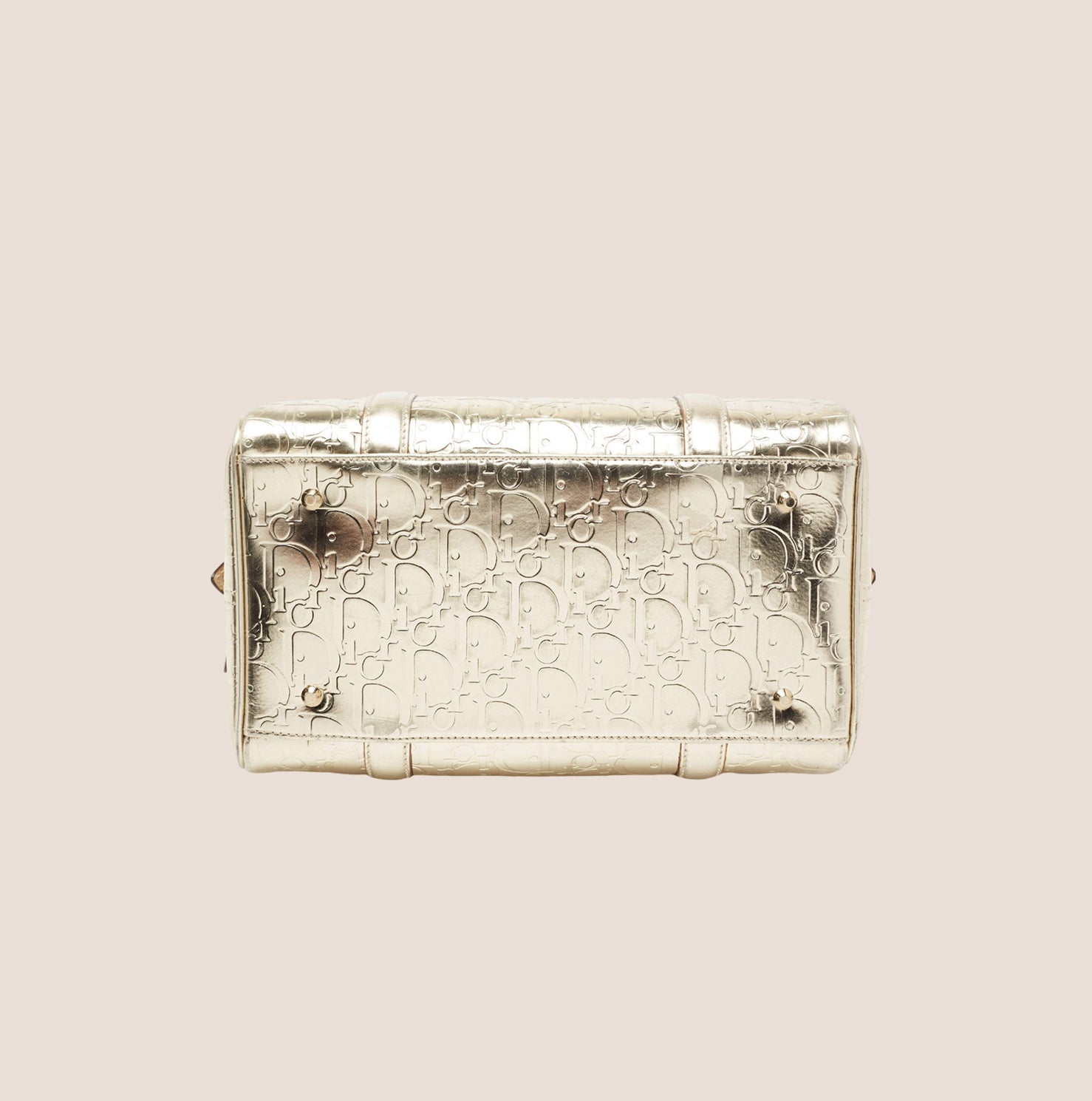 CHRISTIAN DIOR GOLD METALLIC TROTTER PATENT LEATHER BOSTON BAG