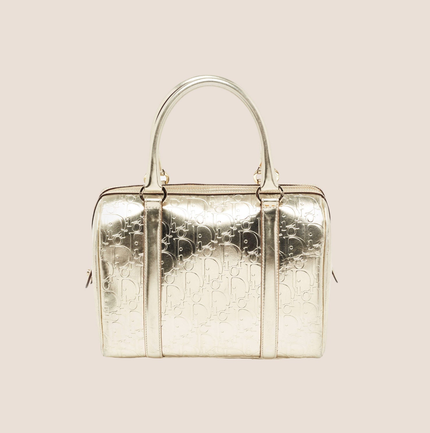 Vintage Christian Dior Metallic Gold Trotter Parent Leather Boston bag.