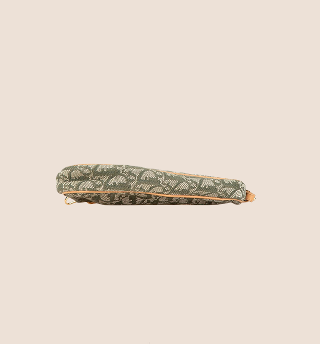Vintage Christian Dior Green & Beige Trotter Canvas Mini Saddle Bag.