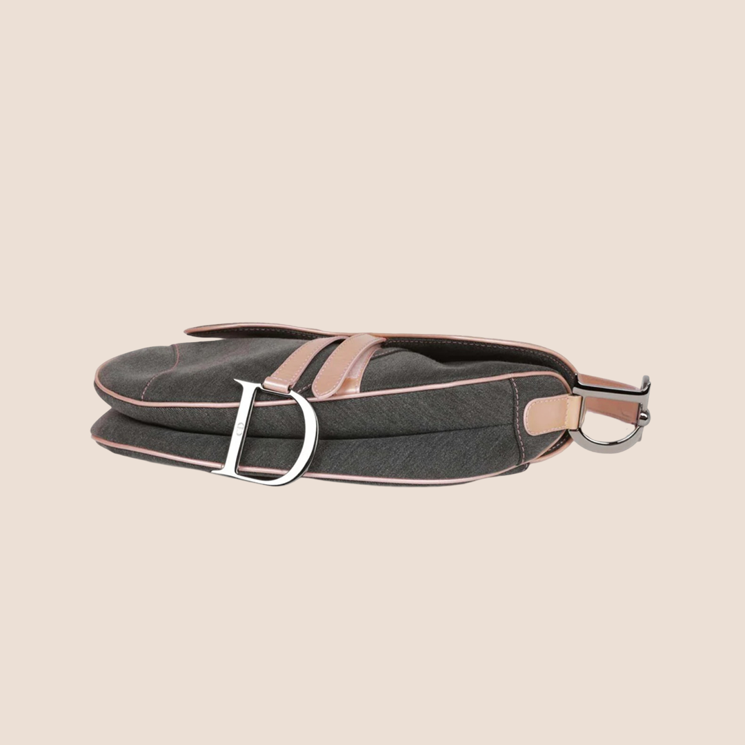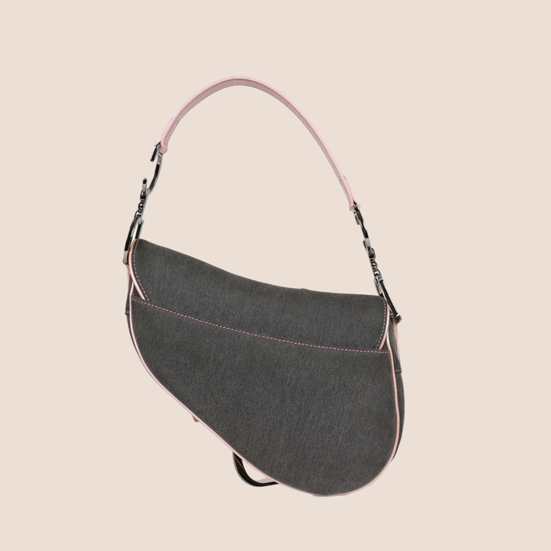 CHRISTIAN DIOR GREY DENIM & PINK SADDLE BAG