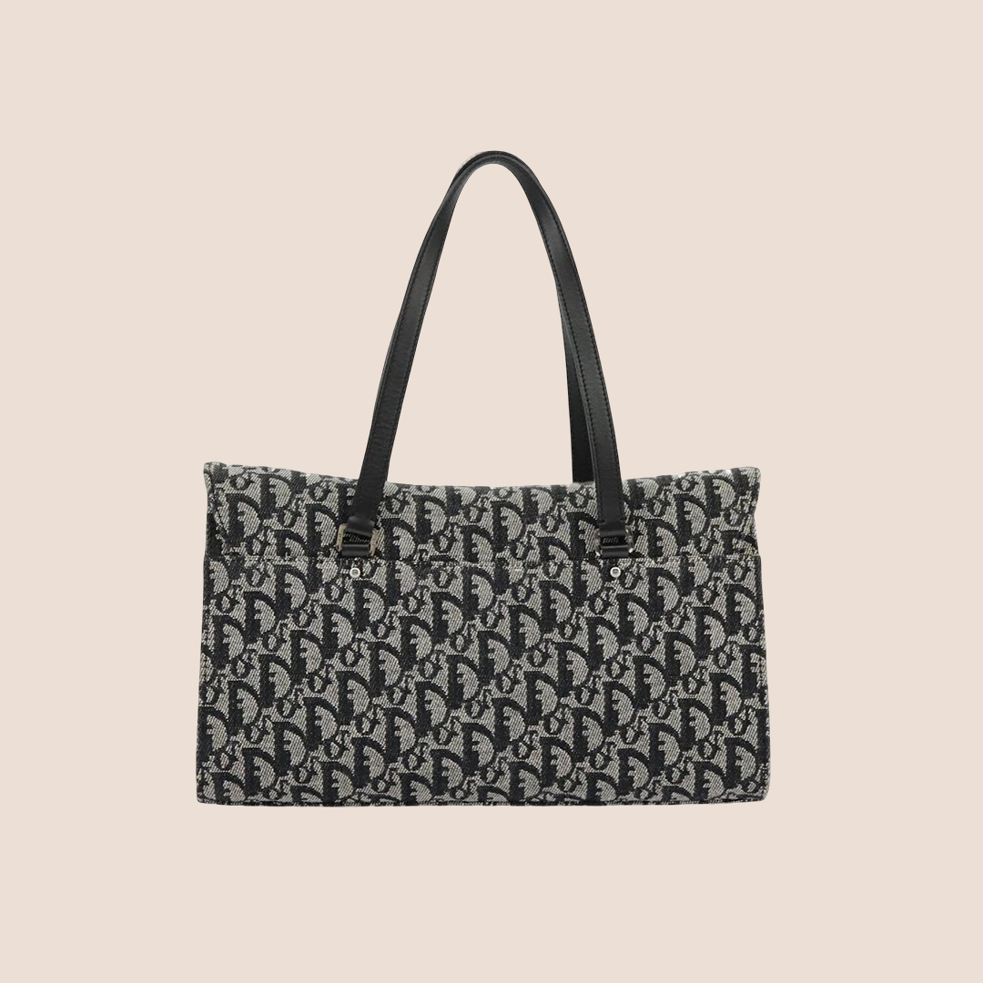 CHRISTIAN DIOR GREY & NAVY TROTTER SADDLE BRIEFCASE BAG