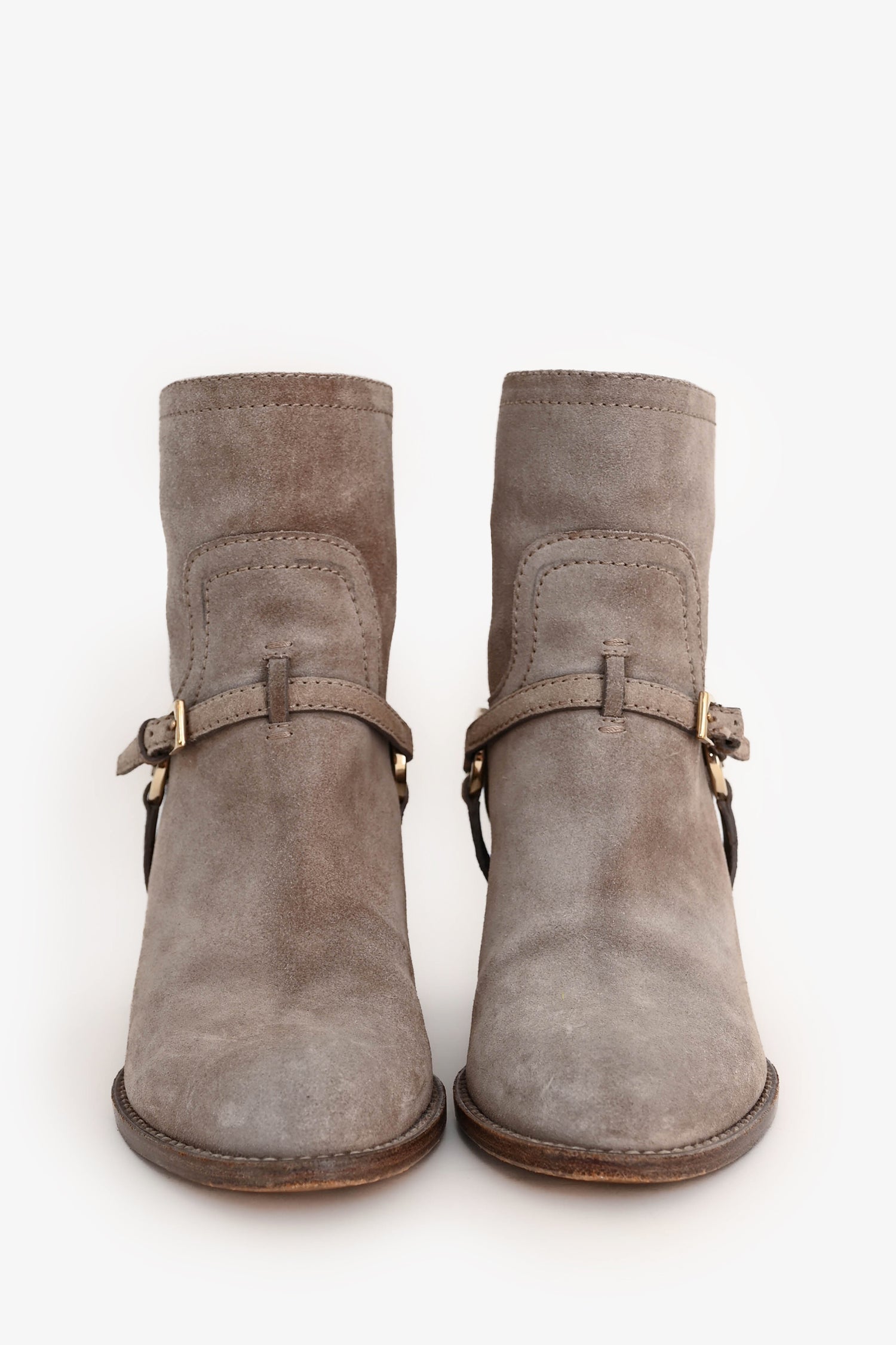 Christian Dior Grey Ombre Suede CD Buckled Heeled Ankle Boots Size 36.5